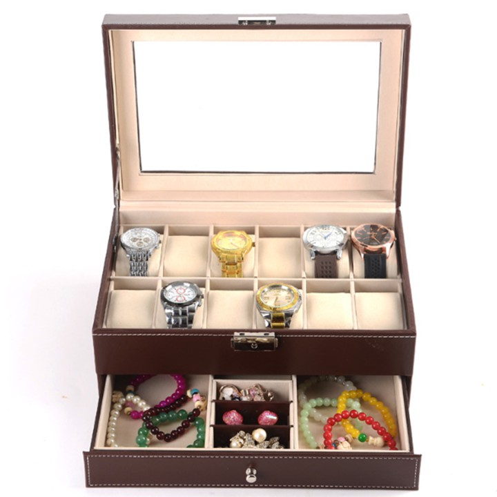 ️THÔNG TIN SẢN PHẨM => Hộp đựng 12 đồng hồ kèm 1 ngăn đựng nhẫn bông tai và kính => Kích Thước : 30cm x 20cm x13 cm => Màu : Nâu => Chất liệu khung gỗ bọc da ➥ GIAO HÀNG & THANH TOÁN (COD) TẬN NƠI TRÊN TOÀN QUỐC ✚ HOTLINE: 0848.939.688 #hộpđựngđồnghồ #hopdongho #hopdonghoda #hopdungdonghobangda #hộptrangsức #hộpđựngtrangsức #hopdungtrangsuc