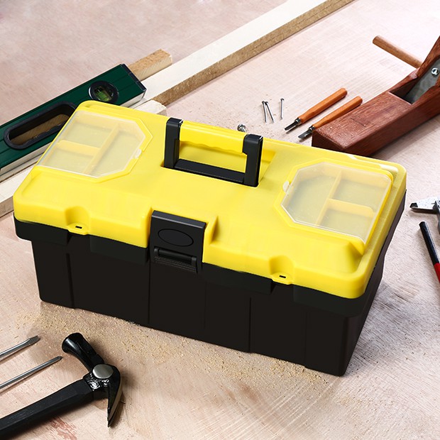 ️hộp đựng dụng cụ đồ nghề size nhỏ 14 in cao cấp ( vàng hot)1021358680f461aa38e5.jpg Hộp đựng dụng cụ, đồ nghề size 14 in Sản phẩm dùng chứa đựng những đồ dùng sửa chữa như búa, kìm, cờ lê…rất tiện dụng và có thể mang xách dễ dàng. Sản phẩm làm bằng chất liệu nhựa PP cứng, rất nhẹ để di chuyển. Khóa nhựa và tay xách góp phần hỗ trợ bạn khi muốn di chuyển thùng. Hộp giúp bạn sắp xếp gọn gàng, ngăn nắp, và hạn chế bị trầy xước hay gỉ sét những vật dụng kỹ thuật. Kích thước hộp 380 x 200 x 180 mm là sản phẩm chính hãng của TOP - Thiết kế 2 tầng tiện lợi (có thể tháo rời) với nhiều ngăn nhỏ giúp phân chia dụng cụ dễ dàng - Cấu tạo khóa cài chắc chắn - Tay xách thuận lợi giúp bạn di chuyển dễ dàng hơn - Sản phẩm đa năng, có thể đựng nhiều đồ dùng trong gia đình như: dụng cụ sửa xe, dụng cụ sửa nhà...