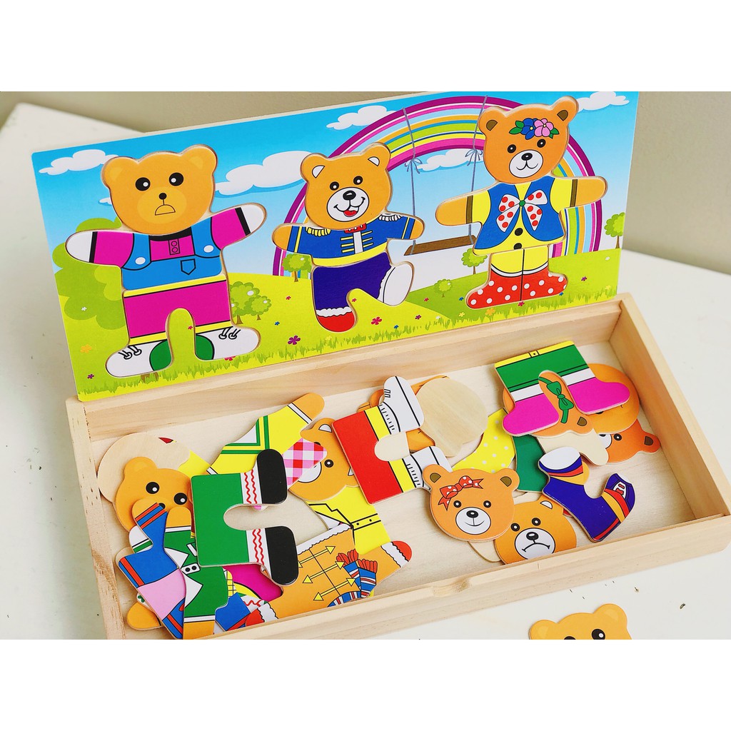 ️***Set đồ chơi tạo hình 3 chú Gấu ???*** Gồm: ♦️ 1 hộp gỗ ♦️ Hơn 40 mảnh ghép bằng gỗ với: Quần, Áo, giày và hơn các khuôn mặt Gấu vui vẻ => cho bé thỏa sức Mix & match với set đồ chơi sáng tạo này #Cam_Kết: ?Sản phẩm được làm 100% từ gỗ cao cấp ?Thiết kế thông minh, đẹp mắt ➥ Bám sơn tuyệt đối, chống ẩm mốc #dochoithongminh263 #đồ_chơi_gỗ #đồ_chơi_ghép_hình #3_chú_gấu