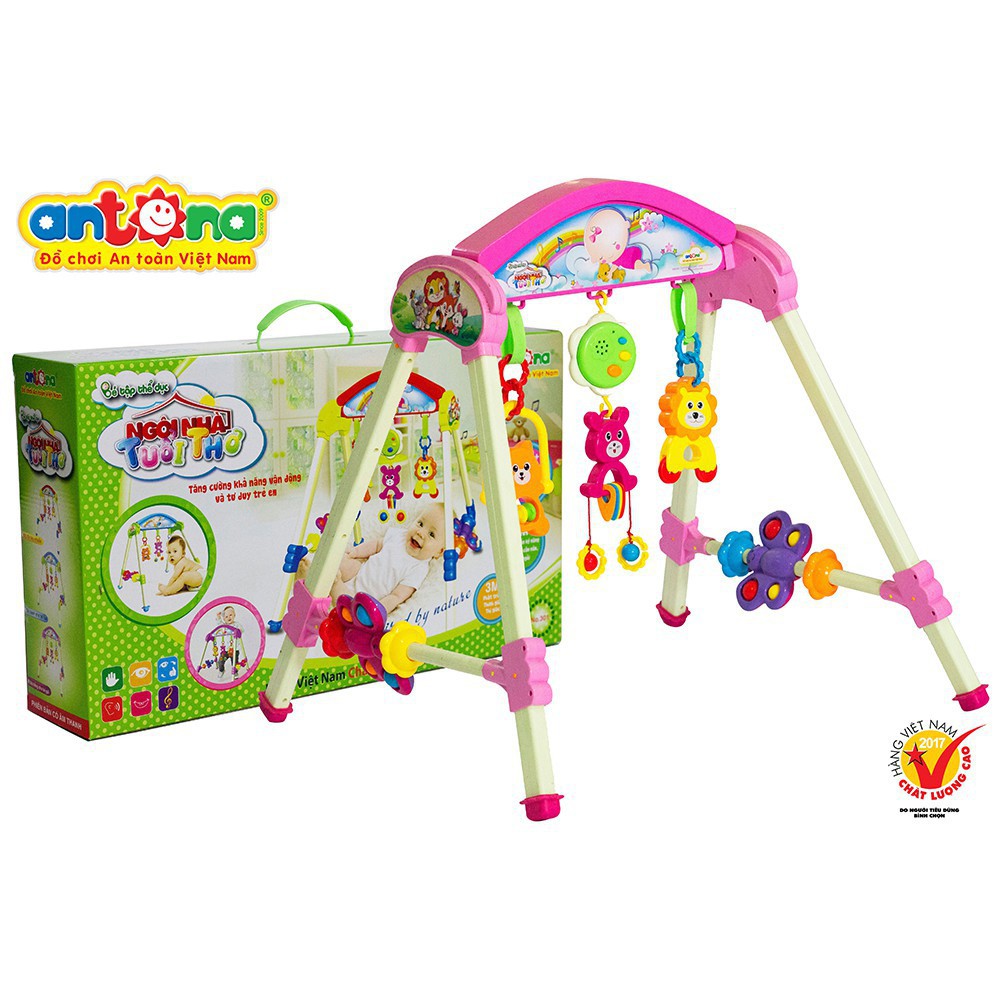 ️Sản phẩm có 3 màu Xanh - Hồng - Đỏ Đồ chơi kệ chữ A Antona No.301 - Ngôi nhà tuổi thơ được làm từ nhựa nguyên sinh cao cấp dành cho các bé trên 3 tháng tuổi. Sản phẩm thiết kế sáng tạo phù hợp với từng giai đoạn phát triển của trẻ: giúp trẻ phát triển toàn về phân biệt hình ảnh màu sắc, phản xạ linh hoạt của các giác quan như thị giác, thính giác và xúc giác. Kệ chữ A là hàng Việt Nam nên mẹ yên tâm về xuất xứ và chất lượng nhé. Đặc điểm nổi bật của kệ chữ A Antona No.301 - Ngôi nhà tuổi thơ - Chất liệu: nhựa nguyên sinh cao cấp, an toàn cho làn da mỏng manh của trẻ - Bộ đồ chơi bao gồm 4 chân kê và 1 khung ngang treo đồ chơi xúc xắc bắt mắt - Kệ chữ A sử dụng Pin để phát ra những bản nhạc vui nhộn. - Đặc biệt, cả hai bản nhạc Twinkle Twinkle Little Star và Chúc Bé Ngủ Ngon đều đã được cấp chứng nhận bản quyền. Bản nhạc Twinkle Twinkle Little Star thường dùng lúc bé ngồi chơi, ăn. Bản nhạc Chúc Bé Ngủ Ngon thường dùng để ru bé ngủ. - Thiết kế với nhiều màu sắc kích thích thị giác của bé phát triển. - Bé có thể nằm chơi, ngồi chơi phù hợp nhất với bé. - Giúp bé làm quen với hình ảnh, màu sắc, âm thanh phát triển thính giác, thị giác và xúc giác - Sản phẩm rất thích hợp cho các bé sơ sinh từ 3 tháng tuổi trở lên. - Xuất xứ: Việt Nam