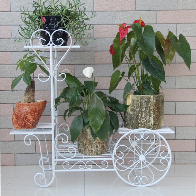️#Kệ sắt để chậu hoa cây cảnh 4 tầng hình bánh xe Kích thước: 70 * 25 * 55 cm (dài * rộng*cao) Diện tích khiêm tốn nơi ban công hay trong nhà bạn sẽ trở thành khu vườn thu nhỏ thật yên bình với những chậu cây mà bạn yêu thích. Ngôi nhà của bạn sẽ trở thành tác phẩm nghệ thuật mới lạ và sinh động hơn khi những chậu cây xinh xinh được đặt trên 1 chiếc giá đỡ bằng sắt nghệ thuật. Kệ giá để chậu hoa làm bằng sắt rỗng, nhẹ vững chắc, sơn trắng sang trọng, làm nổi bật thêm vẻ đẹp của chậu hoa -> Sẽ làm điểm nhấn thu hút cho không gian nhà bạn. Kệ sắt có thể dễ dàng tháo lắp để di chuyển đến nơi bạn mong muốn. #kedecaycanh #kecaycanh #ke #sike