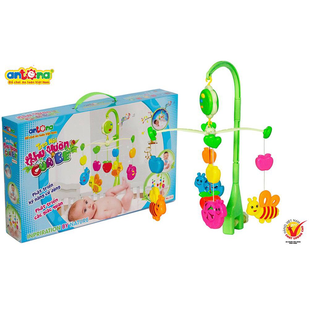 ️Kệ Treo Nôi Khu Vườn Của Bé Antona Loại Có Nhạc Ru Hàng VIỆT NAM chất lượng cao - hãng ANTONA ✅✅✅ #treo_nôi_Khu_vườn_của_bé được thiết kế như một khu vườn thu nhỏ, với các dây đồ chơi hình con vật dễ thương cùng màu sắc rực rỡ, giúp bé phát triển và hoàn thiện các giác quan ngay tư đầu. Bộ sản phẩm còn được thiết kế có khả năng phát ra những âm thanh vui nhộn cùng bản nhạc “Mẹ yêu con” không chỉ giúp bé phát triển thính giác mà còn giúp hình thành cho bé một nhân cách tốt, giúp gắn kết tình cảm gia đình. ⛔⛔⛔Đặc điểm nội bật và lợi ích mang lại cho bé khi chơi: ⚠️⚠️ Treo nôi “Khu vườn của bé” được thiết kế mô phỏng một khu vườn thu nhỏ, có cây, có hoa, có quả và có cả côn trùng, tạo sự thích thú cho bé khi chơi, giúp tăng cường khả năng tư duy và ghi nhớ ngay từ nhỏ. ?➥ Các dây đồ chơi được thiết kế tạo thành không gian một khu vườn, kích thích sự tò mò, tăng khả năng quan sát của bé. ⚠️⚠️ Màu sắc các dây đồ chơi tươi sáng bắt mắt, cho bé nhận biết được các loại màu sắc khác nhau. ?➥ Các con vật có khả năng phát ra những âm thanh vui nhộn, giúp bé phát triển thính giác. ⚠️⚠️ Là sản phẩm treo nôi đâu tiền của Việt Nam có bài hát tiếng Việt có lời. Với việc lựa chọn bài hát “Mẹ yêu con” của nghệ sĩ Thu Hiền, như lời gửi gắm tình yêu thương vô bờ bến của các mẹ dành cho các con thông qua bài hát ru quen thuộc. ?➥ Các dây đồ chơi được thiết kế có thể tháo rời, ba mẹ có thể treo trên giường, nôi hay xe đẩy để bé vui chơi mọi lúc mọi nơi. ⚠️⚠️ Ba mẹ cũng có thể tháo rời các con vật ở dây treo để cho bé chơi trực tiếp, tăng khả năng cầm nắm, cũng như giúp các thao tác ở tay của bé trở lên linh hoạt hơn. ?➥ Sản phẩm là hàng Việt Nam được làm từ 100% nhựa nguyên sinh và chất liệu an toàn, đảm bảo an toàn cho trẻ khi vui chơi. #treonoi #treonoiconhac #treonoichobe