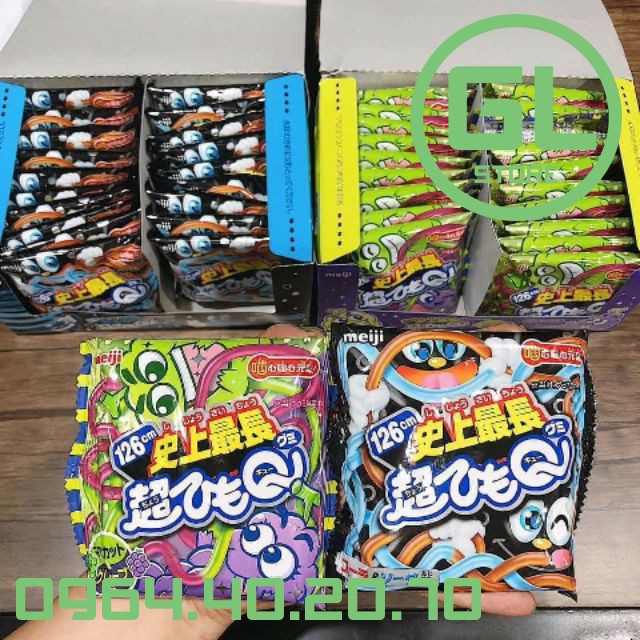 ️Kẹo sợi siêu dài Meiji 126cm chuẩn Nhật Bản HSD 2021 (quý khách vui lòng nhắn tin cho shop để cập nhật thông tin mới nhất) Xuất xứ: Nhật Bản Trọng lượng: 10g, dài 126cm Hương vị: nho, cola ➥ Mỗi gói gồm 1 dây kẹo duy nhất dài 126cm, nghe hơi ngộ nhưng đây là loại kẹo cực được ưa chuộng tại Nhật, luôn trong tình trạng sold out khắp nơi ?. ___ ➥ Dây kẹo vừa dai lại đậm đà siêu ngon. Mỗi dây gồm 2 vị mix cùng nhau. Khi măm kéo ra "bứt" từ từ thú vị lắm ạh :"> ___ Hiện tại có 2 vị sau: ➡️ GÓI TÍM: mix nho xanh và nho tím ➡️ GÓI ĐEN: mix vị soda và cola. -------------------------------- Cam kết của GL Store: - Khách hàng được đổi trả trong vòng 7 ngày nếu như sai/thiếu hàng (yêu cầu khách có video khui hàng) mà 2 bên đã có thỏa thuận trước. - Cam kết bồi thường gấp đôi đơn hàng nếu như phát hiện sản phẩm không chính hãng / kém chất lượng / hết date. - Niềm tin tưởng của khách hàng là động lực thúc đẩy sự phát triển của GL Store trong tương lai. Mọi người vui lòng để lại thông tin,sđt trong phần chat box để nhân viên shop liên hệ chăm sóc tốt hơn nhé! #meiji #keo #keodeo #sieudai #nhatban #glstore