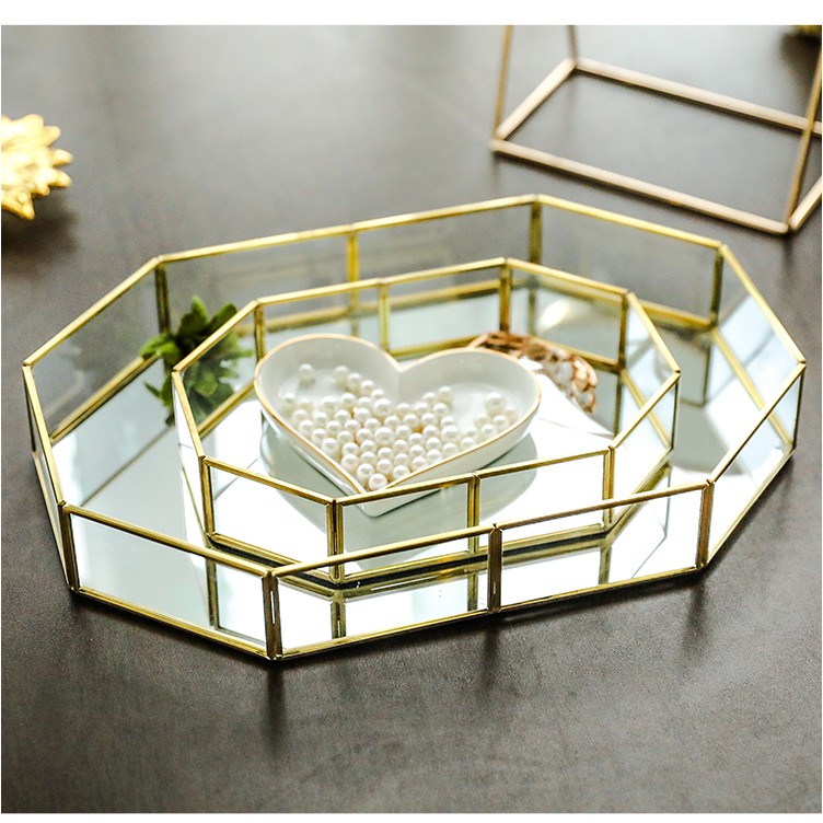 ️Khay 8 cạnh (size to, size nhỏ) viền kim loại cao cấp Gold 09 - Chất liệu: Kính, kim loại - Kích thước: size to: 31.5 x 21.5 x 5 cm size nhỏ: 20 x 14.2 x 4.5 cm - Màu sắc: Viền vàng