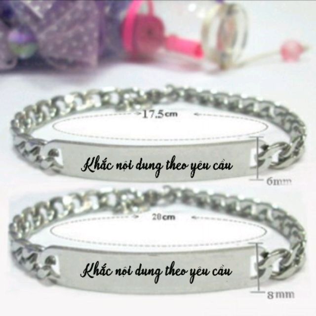 ️Lắc tay inox cặp đôi nam - nữ khắc nội dung theo yêu cầu Màu sắc: trắng Chất liệu: 100%inox Bảo hành: vĩnh viễn, không đen, không gỉ sét Xuất xứ: Việt Nam Chiều dài: lắc nữ 17,5cm; lắc nam 20cm (hoặc các bạn có thể đo kích thước cổ tay rồi báo shop, shop sẽ chỉnh theo size của các bạn) Khi các bạn đặt hàng các bạn ghi chú phần khắc theo yêu cầu mà các bạn muốn khắc lên. Ví dụ: - lắc nam: An love My (An ❤ My) - lắc nữ: My love An (My ❤ An) Khắc tất cả mọi hình ảnh; ký tự; ký hiệu; chữ viết: Tiếng Việt, Tiếng Anh, Tiếng Hàn, Trung, Thái... #khắctên #khắcchữ #khắcdấu #khắctheoyêucầu #lắccặpđôi
