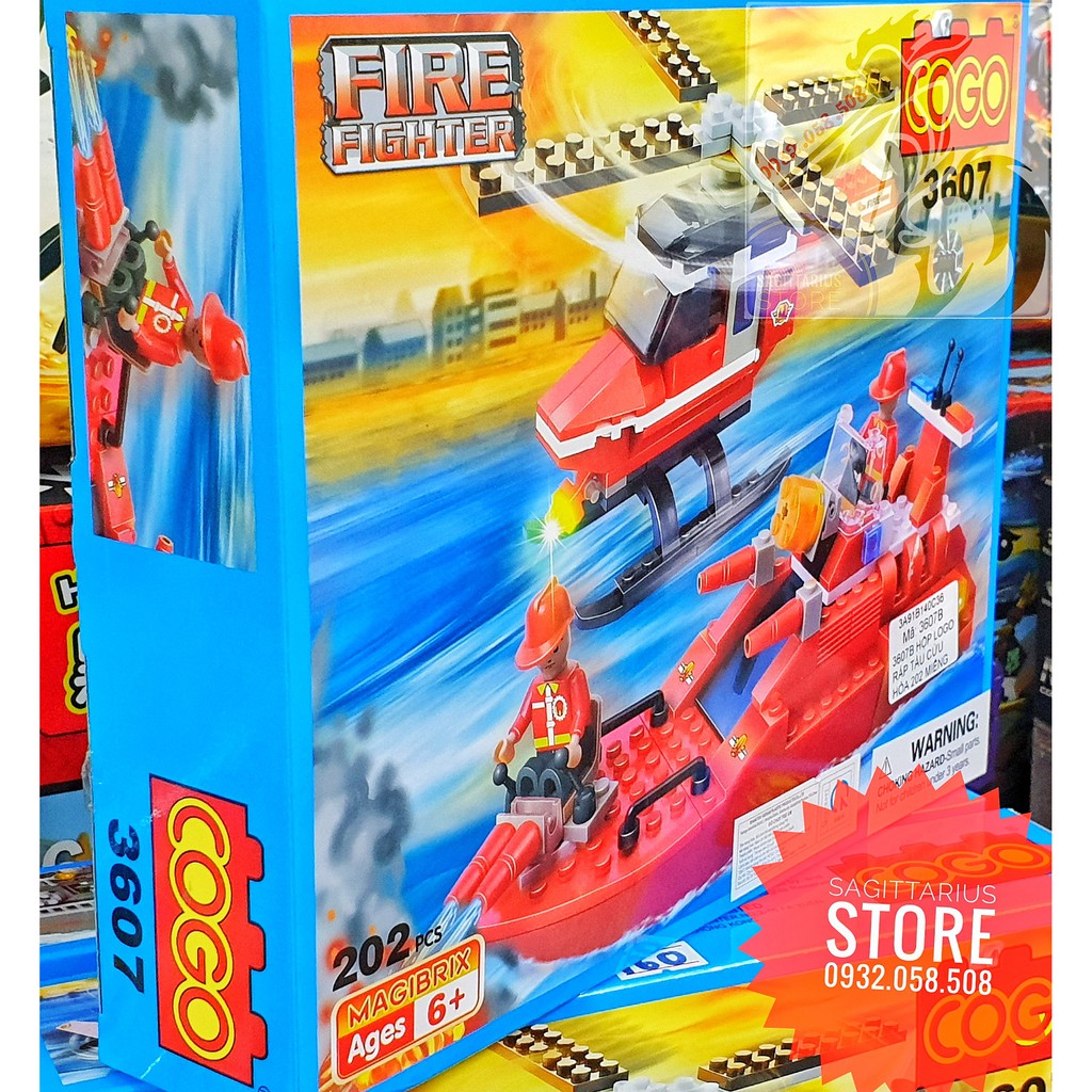 LEGO COGO-3607 Lắp Ráp Trực Thăng và Tàu Cứu Hỏa ( 202 Miếng )
