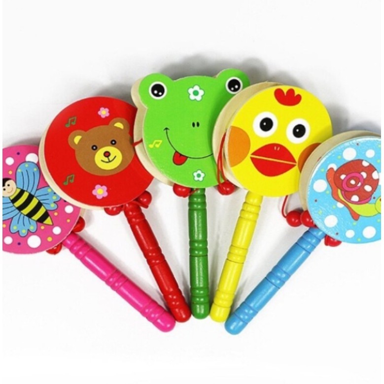 ️1. Thông tin sản phẩm - Chất liệu: gỗ an toàn cho bé. - Màu sắc: Nhiều màu đẹp, sặc sỡ, kiểu dáng bắt mắt. - Thiết kế: Dạng trống lắc cầm tay với nhiều hình con vật ngộ nghĩnh đáng yêu có thể phát ra âm thanh. - Trọng lượng: 100g CHI TIẾT SẢN PHẨM - Đồ chơi gỗ cho bé dạng trống lắc giúp tạo ra âm thanh vui tai kích thích thính giác cho bé. XUẤT XỨ: Việt Nam giao hình ngẫu nhiên