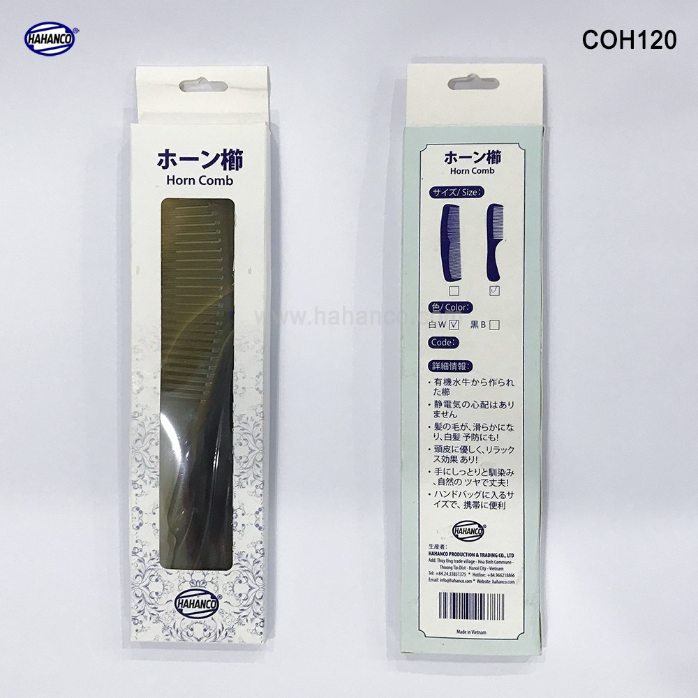 ️Lược sừng xuất khẩu sang Nhật Bản. Lược sừng COH150 là chiếc lược có kích thước rất nhỏ, có thể bỏ vào ví nam. Giúp tự tin khi ra đường. Đàn ông Nhật khi làm việc căng thẳng họ thường mang chiếc lược này ra chải tóc để giảm thiểu áp lực. Nhật là một trong những nước khắt khe về tiêu chuẩn an toàn và chất lượng, nhằm đảm bảo đến lợi ích con người, môi trường. Đối những những chiếc lược sừng được HAHANCO xuất khẩu sang Nhật thì độ tỉ mỉ các chi tiết và chính xác rất cao, để bán được những chiếc lược sừng ở các siêu thị tại Nhật Bản, chúng tôi đã phải lỗ lực và cố gắng sản xuất hoàn thiện những chiếc lược đạt tiêu chuẩn do Nhật thẩm định. ------------------- - Lần đầu tiên CTy HAHANCO triển khai hệ thống bán lẻ trong nước, chúng tôi giảm giá nhiều mẫu lược để cho khách hàng trong nước biết đến và mua được đúng chiếc lược bằng 100% sừng, hàng xuất khẩu, tiêu chuẩn và chất lượng hàng đầu. --------------------------------- Trên từng sản phẩm: - Được đóng gói bao bì bán tại thị trường Nhật, nên hộp rất đẹp và in toàn bộ chữ Nhật, - Bạn có thể làm quà tặng hoặc biếu. Lưu ý: Vì là nguyên liệu sừng tự nhiên nên màu sắc của từng chiếc lược sẽ không giống nhau, mỗi cái sẽ có một màu, do được làm thủ công nên độ dung sai về kích thước có thể bị to nhỏ hơn một ít. Sử dụng tránh ngâm trong nước để cho chiếc lược lúc nào cũng bền đẹp. ---------------------------------- Công dụng của lược sừng: • 100% nguyên liệu là sừng trâu. • Lược sừng không bị tĩnh điện như các loại lược nhựa hoặc loại khác (tĩnh điện có thể nhận biết được là khi ta chải lược nhựa sẽ có 1 luồng điện nhẹ làm giật tê da đầu, rất ảnh hưởng đến não và sức khỏe) • Là chất liệu tự nhiên, không có độc tố, khi chải đầu giúp tuần hoàn khí huyết tốt, làm cho tóc suôn và mềm mại, tránh rụng tóc. • Lược sừng là loại kỵ gió rất tốt, giúp bạn chống lại thời tiết mỗi khi thay đổi. -------------------- Dân văn phòng thường ngồi lâu một chỗ không hoạt động. Lâu dần sẽ khiến các cơ bị cứng, khí huyết không lưu thông, gây đau lưng mỏi eo. Lúc này, nếu dùng lưng lược hoặc cán lược gõ vào vùng lưng để mát xa các huyệt trên lưng sẽ mang lại tác dụng thúc đẩy tuần hoàn máu, lưu thông kinh mạch. Dân văn phòng tốt nhất nên có 1 chiếc lược trong ngăn kéo bàn làm việc, để sau một thời gian làm việc, có thể dùng lược gõ vào lưng giúp giảm mệt mỏi, từ đó tăng cường độ tập trung cho công việc. ------------------------ Mọi chi tiết xin liên hệ: ĐT: 024.33772999 Mua lẻ gọi ngay 0966218866 để được tư vấn. Bạn có thể kết bạn: (+84 966218866) Zalo, iMessage, WeChat, Viber, LINE, WhatsApp, Skype. Bạn có thể vào phần video tại web hahanco để xem quy trình sản xuất lược sừng. Hiện nay Công Ty HAHANCO là một trong những nhà sản xuất sừng lớn tại Làng Nghề Lược Sừng Thụy Ứng. Bạn có thể về tận xưởng xem quy trình sản xuất lược từ sừng trâu, bò. #Lược #nhatban #sungtrau #sungbochauphi #chínhhãng #chodemchunhat #luocsungtrau #luocsunghahanco #luocsungxuatkhau #luochaitoc #luoc-sung #luocxinh #luocdep #luocnam