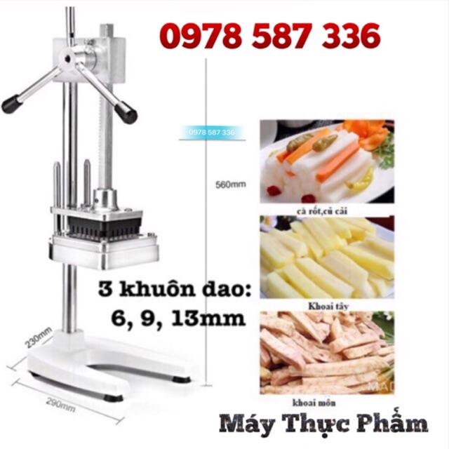 ️?☘️ Chào mừng quý khách đã đến với gian hàng Máy Thực Phẩm ?☘️ Kính chúc quý khách ngày mới tốt lành !!!➥ Đến với Máy Thực Phẩm quý khách sẽ được trải nghiệm mua sắm các sản phẩm chính hãng. Với mục tiêu mang đến sự hài lòng Máy Thực Phẩm cam kết. ➥ Sản phẩm có giá rẻ nhất thị trường - giao hàng nhanh chóng ➥ - Hotline: 0978.587.336 - 0988.669.291 - 0936.311.943 - 0838.703.107 + Chi nhánh 1: Số 46 - Ngõ 139 - Mỹ Đình - Nam Từ Liêm - Hà Nội + Chi nhánh 2: Số 795/1 Âu Cơ - Tân Thành - Tân Phú - Hồ Chí Minh Máy Thực Phẩm rất hân hạnh phục vụ quý khách ❤️❤️❤️ ------------------------- THÔNG SỐ SẢN PHẨM + Chất liệu khuôn cắt: inox + Khuôn cắt: 6*6mm; 9*9mm, 13*13mm + Năng suất: 35-45 kg/h + Kích thước: 290*560*230 (mm) + Trọng lượng: 7kg + BẢO HÀNH: 12 THÁNG - SẢN PHẨM LỖI MIỄN PHÍ 1 ĐỔI 1 TRONG VÒNG 7 NGÀY + Máy cắt khoai tây vuông – Cách đơn giản để có món khoai tây chiên thơm ngon! - Máy cắt khoai tây vuông là một thiết bị dùng để cắt khoai tây thành từng lát nhỏ và đều một cách nhanh chóng giúp bạn tiết kiệm được tối đa thời gian khi nấu nướng. Máy thích hợp sử dụng trong các quầy đồ ăn nhanh, quán cafe, nhà hàng, khách sạn ẩm thực, hay các hộ kinh doanh nhỏ lẻ . - Máy cắt khoai tây vuông giúp cho công việc chế biến khoai của quý khách trở nên nhẹ nhàng và đơn giản hơn. - Máy cắt khoai tây vuông có các khuôn dao được làm bằng chất liệu inox vô cùng sắc bén, bàn ép bằng thép cứng giúp máy dễ dàng cắt được đa dạng các loại củ quả, đảm bảo vệ sinh thực phẩm. - Máy cắt khoai tây vuông với khuôn dao được làm bằng chất liệu inox - Máy cắt khoai tây vuông có kết cấu đơn giản, trọng lượng gọn nhẹ, dễ dàng vệ sinh sau mỗi lần sử dụng. Máy vận hành đơn giản, không sử dụng điện, đảm bảo an toàn cho người sử dụng. - Máy cắt khoai tây vuông vận hành đơn giản Máy cắt khoai tây vuông có 3 loại khuôn cắt: Khuôn cho nguyên liệu đầu ra có kích thước 6 x 6 (mm), 9 x 9 (mm) và khuôn 13 x 13 (mm) phù hợp với từng mục đích của người sử dụng. - Với Máy cắt khoai tây vuông, món khoai tây chiên sẽ trở nên đẹp mắt, ngon miệng hơn. Đây là một sản phẩm vô cùng tiện ích cho các gia đình, nhà hàng, tiệm ăn nhanh… + Cách sử dụng Máy cắt khoai tây vuông 3A vô cùng đơn giản: - Trước tiên, chọn loại khuôn cắt muốn sử dụng và dùng tuốc-nơ-vít gắn khuôn cắt đó vào bàn cắt. - Sau đó, đặt nguyên liệu lên bàn cắt và quay tay quay để cắt nguyên liệu. - Đặt nguyên liệu lên bàn cắt và quay tay quay * Lưu ý: Nguyên liệu cần có đường kính nhỏ hơn khuôn cắt để việc cắt nguyên liệu dễ dàng, đầu ra sản phẩm đều và đẹp hơn.
