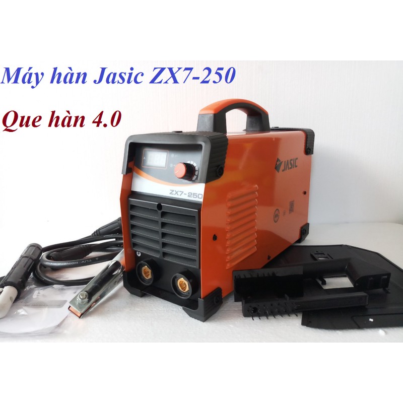 ️Máy hàn Jasic 250A - máy hàn giá rẻ Với mục tiêu mang tới cho khách hàng dòng sản phẩm máy hàn chất lượng cao với giá thành rẻ. Chúng tôi đã không ngừng nỗ lực để có thể nhập khẩu về nước không qua các công ty trung gian, và mang tới tận tay người tiêu dùng loại máy hàn nổi tiếng mang thương hiệu Jasic.Máy hàn Jasic 250A - máy hàn giá rẻ 2 Máy hàn que dùng điện Jasic ZX7-250 là sản phẩm được sản xuất theo công nghệ của Anh có tính năng nổi bật là tiết kiệm năng lượng hơn so với máy hàn thông thường. Việc sử dụng Máy hàn Jasic sẽ có hiệu suất làm việc rất cao, thời gian hàn không giới hạn. Ngoài ra, máy còn có chế độ bảo vệ quá nhiệt, quá tải, nguồn điện không ổn định và chế độ chống giật. Máy hàn Jasic 250A - máy hàn giá rẻ 3 ỨNG DỤNG: - Máy hàn que hay còn gọi hàn hồ quang tay là trình hàn dòng điện nóng chảy sử dụng điện cực dưới dạng que hàn thường có vỏ bọc và không sử dụng khí bảo vệ, trong tất cả các thao tác đều sử dụng bằng tay. - Ưu điểm: hàn tốt với ngoài trời và nơi có gió, hàn trước các bề mặt ít được làm sạch. - Là phương pháp hàn phố biến nhất trên thế giới. Thích hợp cho hàn các chiều dày nhỏ và trung bình ở mọi tư thế trong không gian. - Thường hàn thép cacbon, thép hợp kim cao và thấp, thép không gỉ, gang xám và gang dẻo. Ít phổ biến hàn kim loại màu như: Niken, đồng và hợp kim của chúng. - Máy hàn que Jasic được ứng dụng nhiều trong các công việc như hàn cửa sắt, bàn ghế, lan can hoặc gia công cơ khí. - Sử dụng rộng rãi trong xây dựng kết cấu thép, công nghiệp chế tạo. Thích hợp đặt tại xưởng và đi công trình cơ khí dân dụng. Cấu tạo đảm bảo nên máy làm việc được trong điều kiện công trường. Máy hàn Jasic 250A - máy hàn giá rẻ 4 ƯU ĐIỂM NỔI BẬT : Thiết kế linh hoạt, tiện lợi: - Máy hàn ZX7-250 được thiết kế nhỏ gọn và nhẹ nhàng giúp chúng ta di chuyển một cách dễ dàng và nhanh chóng. - Làm việc được các que với kích cỡ 1.6 - 4.0mm, hàn que 2.5 - 4.0mm liên tục. - Có đồng hồ điện tử hiển thị cường độ dòng hàn, điện áp hàn giúp theo dõi được thông số hàn. - Hồ quang ổn định, khả năng chống dính cao, giúp có thể hàn những loại que khó hàn. Thích hợp khi dùng các loại que acid hoặc các loại que hàn cơ bản. - Dòng hàn lớn, chu kỳ tải cao. - Dễ dàng cài đặt, dễ dàng vận hành. Máy hàn Jasic 250A - máy hàn giá rẻ 5 Hoạt động mạnh mẽ, an toàn, tiết kiệm điện: - Máy hàn chế tạo theo công nghệ Inverter nên sản phẩm có khả năng tiết kiệm điện so với máy hàn thông thường. - Có chế độ chống giật khi làm ở môi trường ẩm ướt. - Hoạt động ổn định, có chế độ tự động bù áp khi điện áp vào biến đổi. - Có chế độ tự ngắt khi quá dòng, quá nhiệt giúp đảm bảo độ bền của máy. Máy thích nghi tốt khi nguồn là máy phát điện hoặc những nơi có nguồn điện yếu, không ổn định, giảm rủi ro cháy nổ do nguồn điện. - Mồi hồ quang dễ, hồ quang ổn định, êm ít bắn toé cho hình dáng mối hàn đẹp và hạn chế ảnh hưởng tia hàn đến người sử dụng. Máy hàn Jasic 250A - máy hàn giá rẻ 6 Công nghệ hiện đại: - Máy được thiết kế theo công nghệ h