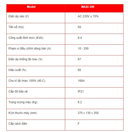 Siêu khỏe: Hàn cường độ cao liên tục với que 3.2mm hàn được que 4.0mm liên tục tại dòng hàn 160A. Siêu bền, thiết kế dư công suất thực giúp nâng cao hiệu quả công việc Tiết kiệm điện năng: Sử dụng công nghệ biến tần của Italy cùng linh kiện từ G7 với tần số hoạt động đến 40 KHz tạo chất lượng hàn rất cao Ưu việt: Chất lượng mối hàn cao, tương đương với các máy hàn hàng đầu trên thế giới An toàn: Hoạt động bền bỉ ngay cả môi trường khắc nghiệt, tự động bảo vệ quá dòng, quá áp Linh hoạt: Hàn đa dạng các loại vật liệu: Thép cacbon, thép hợp kim, thép không gỉ