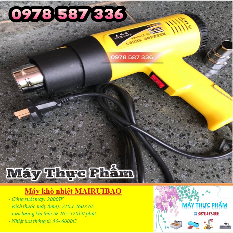 ️?☘️ Chào mừng quý khách đã đến với gian hàng Máy Thực Phẩm ?☘️ Kính chúc quý khách ngày mới tốt lành !!!➥ Đến với Máy Thực Phẩm quý khách sẽ được trải nghiệm mua sắm các sản phẩm chính hãng. Với mục tiêu mang đến sự hài lòng Máy Thực Phẩm cam kết ➥ Sản phẩm có giá rẻ nhất thị trường - giao hàng nhanh chóng ➥ - Hotline: 0978.587.336 - 0988.669.291 - 0936.311.943 - 0838.703.107 + Chi nhánh 1: Số 46 - Ngõ 139 - Mỹ Đình - Nam Từ Liêm - Hà Nội + Chi nhánh 2: Số 795/1 Âu Cơ - Tân Thành - Tân Phú - Hồ Chí Minh Máy Thực Phẩm rất hân hạnh phục vụ quý khách ❤️❤️❤️ --------------------------------------------------------- THÔNG SỐ SẢN PHẨM ✓ Nguồn điện: 220V-50Hz ✓ Công suất máy: 2000W ✓ Kích thước máy (mm): 210 x 260 x 65 ✓ Công suất tiêu thụ điện năng ở chế độ vừa 1600W ✓ Công suất tiêu thụ điện năng ở chế độ mạnh 2000W ✓ Lưu lượng khí thổi từ 265-520 lít/ phút ✓ Nhiệt lưu thông từ 50- 6000C ✓ Khối lượng tịnh: 0.85 kg ✓ Hãng sản xuất: Boda Máy khò hơi nóng hay còn có tên gọi khác là máy thổi hơi nóng được thiết kế nhỏ gọn nhưng lại có rất nhiều công dụng trong gia đình cũng như công nghiệp. Những công dụng độc đáo của máy khò hơi nóng: 1. Sấy khô sơn Khi cần thực hiện ngay công việc trên tường vừa mới sơn xong, có thể sử dụng hơi nóng của chiếc máy thổi hơi nóng để làm khô lớp sơn nhanh chóng và tiết kiệm thời gian. 2. Uống cong ống nhựa Đây là một trong những ứng dụng phổ của những người thợ điện nước. Chỉ cần sử dụng súng thổi hơi nóng và một cuộn dây đặc biệt có thể uống cong ống nhựa dưới mọi góc độ một cách tiệt lợi và nhanh chóng. 3. Loại bỏ lớp sơn cũ Để loại bỏ các lớp sơn cũ trên các đồ nội thất, đồ gỗ không ít người thợ sử dụng dung dịch hoá chất có tính ăn mòn, tuy nhiên với chiếc súng khò mang lại sự an toàn hơn, tiết kiệm thời gian và không gại đến môi trường và sức khoẻ người thợ. Lợi dụng sức nóng của chiếc máy khò ở nhiệt độ cao để làm bong ra các lớp sơn cũ. 4. Hàn nhựa hay nối các tấm bạt nhựa Thật đơn giản và dễ dàng hơn với chiếc súng thổi hơi nóng sử dụng đầu khò đặc biệt và 1 thanh nhựa là có thể hàn được các chất liệu từ nhựa PVC. Ngoài ra còn có thể sử dụng súng khò để nối các tấm bạt nhựa lớn để làm lều trại hay dùng trong vận chuyển bằng xe tải hoặc bạt chống thấm cho hồ bơi …. 5. Làm mềm lớp keo bị khô cứng. Công việc này có thể ứng dụng phổ biến nhất hàng ngày như bóc các lớp đề can gián trên thân ô tô, xe máy. Sử dụng súng thổi hơi nóng làm nóng vùng cần gỡ keo và bắt đầu tiến hành gỡ, với phần keo còn dính lại có thể sử dụng cụ loại bỏ nhựa. Súng thổi hơi nóng cũng là dụng cụ để gián những tấm đề can trên xe ô tô và xe máy hay những tấm nhựa lên cửa kính. 6. Phục hồi viền nhựa của xe Với những chiếc ô tô cũ, viền nhựa của sẻ bị ngả thành máu xám xỉn, có thể sử dụng máy thổi hơi nóng làm lại viền mới cho xe.