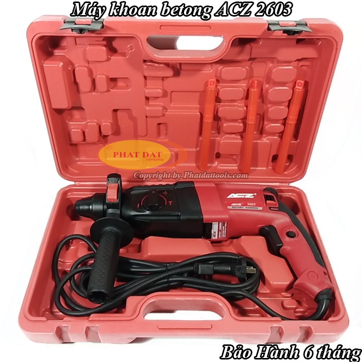 ️Máy khoan betong cầm tay ACZ 2603 Máy khoan betong cầm tay ACZ 2603 chuyên dụng trong thi công xây dựng và sửa chữa gia đình Ưu điểm Với thiết kế nhỏ gọn, tốc độ mạnh mẽ, hiệu suất làm việc ổn định Máy khoan betong cầm tay ACZ 2603 là lựa chọn tuyệt vời trong các công việc khoan bê tông, tường, gỗ, thép… Máy khoan betong cầm tay ACZ 2603 với công suất 780 W, mạnh mẽ so với các dòng máy tương đương, là lựa chọn thích hợp cho các công trình vừa và nhỏ. Đặc biệt, máy được thiết kế rất nhẹ, đem đến sự thư thái và tiện dụng khi làm việc.Độ bền và độ ổn định cao,ít hư vặt. Máy khoan betong cầm tay ACZ 2603 được tích hợp chức năng điều khiển tốc độ. Với chức năng đảo chiều và thông minh, Máy khoan betong cầm tay ACZ 2603 có khả năng tháo lắp vít và thuận tiện khi rút mũi khoan. Thông số kĩ thuật Máy khoan betong cầm tay ACZ 2603: -Nguồn 220-230v/50HZ -Công suất 780W -Tốc độ không tải :0-1100v/phút -Tỉ lệ va đập ở mức ổn định :0-4000l/p -Lực đập :3J -Đường kính khoan tối đa :Gỗ :30mm Thép :13mm Bê tông :26mm -Đầu cặp :SDS-plus -Trọng lượng:2,7kg -Xuất xứ :Malaysia -Động cơ lõi đồng 100% -Bảo hành:6 tháng #máykhoanbetong #máykhoanbêtôngacz #máykhoanbêtôngACZ2603
