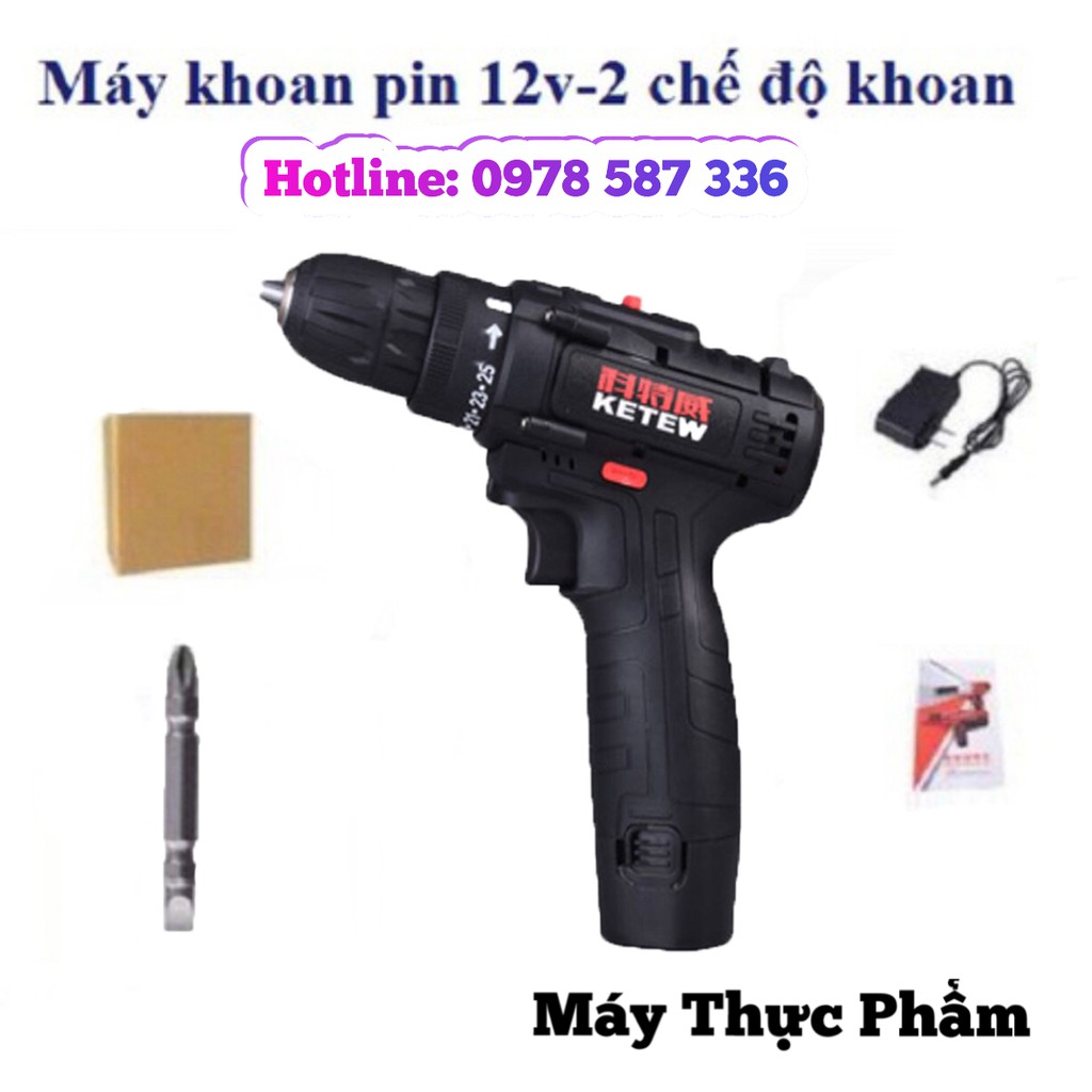 ️?☘️ Chào mừng quý khách đã đến với gian hàng Máy Thực Phẩm ?☘️ Kính chúc quý khách ngày mới tốt lành !!!➥ Đến với Máy Thực Phẩm quý khách sẽ được trải nghiệm mua sắm các sản phẩm chính hãng. Với mục tiêu mang đến sự hài lòng Máy Thực Phẩm cam kết ➥ Sản phẩm có giá rẻ nhất thị trường - giao hàng nhanh chóng ➥ - Hotline: 0978.587.336 - 0988.669.291 - 0936.311.943 - 0838.703.107 + Chi nhánh 1: Số 34 Phố Phượng Trì - Thị Trấn Phùng - Đan Phượng - Hà Nội + Chi nhánh 2 : Số 46 - Ngõ 139 - Mỹ Đình - Nam Từ Liêm - Hà Nội + Chi nhánh 3 : Số 795/1 Âu Cơ - Tân Thành - Tân Phú - Hồ Chí Minh Máy Thực Phẩm rất hân hạnh phục vụ quý khách ❤️❤️❤️ ------------------------------------------- MÁY KHOAN PIN 12V KETEW MÀU ĐEN - 2 TỐC ĐỘ - 2 PIN - Giá niêm yết (530.000đ). Đặc biệt trong Hôm Nay chúng tôi Giảm Chỉ Với: 390.000 VNĐ/chiếc - Đầu khóa đơn: nhanh hơn, dễ hơn trong việc thay vít, giữ chắt đầu vít hơn. Tay cầm mềm giúp tối ưu việc cầm nắm 18 chế độ bắt vít (không bị trờn răng),khoan (chỉnh được tốc độ) THÔNG TIN SẢN PHẨM + MÁY KHOAN PIN 12V KETEW MÀU ĐEN - 2 TỐC ĐỘ - 2 PIN - có báo pin + Đèn led soi sáng + Tốc độ không tải:1200 vòng ( 2 cấp tốc độ ) + Mô men xoắn cực đại: 32 NM + Sử dụng muỗi khoan 0.8mm đến 20mm + Máy khoan pin: Kích thước: 20cm x 21cm + Trọng lượng: 1,2kg + BẢO HÀNH: 12 THÁNG - SẢN PHẨM LỖI MIỄN PHÍ 1 ĐỔI 1 TRONG VÒNG 7 NGÀY + GIAO HÀNG : Toàn Quốc & Hỗ Trợ , Hướng Dẫn Sử Dụng, Chuyển Giao Công Nghệ Miễn Phí - Trong hộp gồm có: + 1 thân máy khoan pin + 2 pin sạc + 1 adapter sạc + Đầu vặn vít 1 đầu - Bộ máy khoan pin cầm tay dùng pin siêu tiện dụng được thiết kế nhỏ gọn, rất nhẹ nhưng làm việc rất hiệu quả. Bạn có thể dễ dàng bảo quản sản phẩm sau khi sử dụng và mang theo bất kì nơi đâu - Thiết kế tay cầm chắc chắn, giúp đảm bảo được sự an toàn trong quá trình làm việc - Với mong muốn mang đến cho khách hàng những hình ảnh sinh động, chân thực nhất về sản phẩm, tất cả ẢNH SẢN PHẨM đều do shop tự chụp 100%, không dùng kĩ xảo chỉnh sửa ảnh để sản phẩm trông đẹp hơn. Nên bạn có thể hoàn toàn yên tâm mua hàng tại SHOP