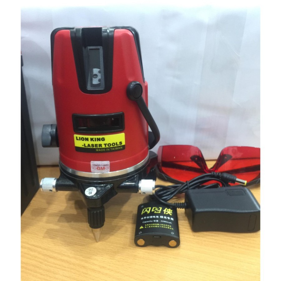 ️Máy cân bằng laze 5 tia đỏ giá rẻ Lion King Máy cân bằng laze 5 tia đỏ giá rẻ Lion King là dòng máy bắn cốt laser được sản xuất theo công nghệ Nhật bản nhằm phục vụ nhu cầu xuất Nhật nên có quy trình sản xuất tiên tiến và nghiệm thu khắt khe nhất nên cho ra dòng sản phẩm với độ nét cao phù hợp với các công việc trong nhà, nơi thiếu sáng. Máy bắn cốt laser 5 tia đỏ giá rẻ Lion King thường được ứng dụng vào các công việc như đi dây, máng cáp, công tắc, ổ cắm, lắp đèn, ống dẫn nước, lắp điều hòa. Thường được dùng kết hợp với Máy cắt rãnh tường 5 lưỡi đi đường điện nước để định vị và cắt nhanh, chính xác, ít tốn công. . Đồng thời giá máy trên đã bao gồm các phụ kiện đi kèm như: Chân máy, Pin, Bộ sạc pin, kính bảo vệ, được đựng trong hộp nhựa rất chắc chắn và an toàn cho máy khi di chuyển.