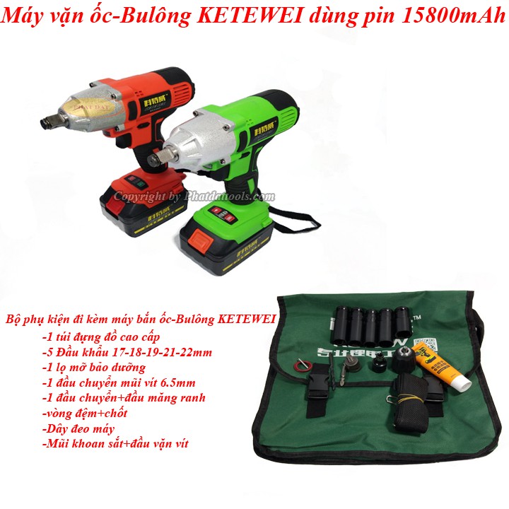 ️Máy Vặn Ốc Bulông KETEWEI Dùng Pin Máy Vặn Ốc Bulông KETEWEI Dùng Pin chuyên dụng trong thi công xây dựng,chế tạo máy,sửa chữa otô xe máy... Máy Vặn Ốc Bulông KETEWEI Dùng Pin có thiết kế nhỏ gọn,rắn chắc,chịu nhiệt và va đập cao. Máy Vặn Ốc Bulông KETEWEI Dùng Pin với 2 pin 98V dung lượng cao 15800mAh giúp bạn thoải mái sử dụng trong cả ngày dài mà không lo hết pin Máy Vặn Ốc Bulông KETEWEI Dùng Pin với lực xoắn tối đa lên tới 320Nm,chế độ auto stop và cộng hưởng lực giúp bạn dễ dàng tháo lắp các loại bulong,ốc một cách dễ dàng,nhanh chóng Máy Vặn Ốc Bulông KETEWEI Dùng Pin nhỏ gọn với trọng lượng 1.7kg giúp bạn thao tác làm việc ở trên cao,những nơi chật hẹp,đèn led chiếu sáng thuận tiện khi làm trong điều kiện thiếu ánh sáng Máy Vặn Ốc Bulông KETEWEI Dùng Pin kết hợp với đầu chuyển măng ranh giúp bạn có thể khoan sắt,khoan tường,bắt vít...Kết hợp với đầu chuyển vít bắn tôn cực kì tiện lợi,lực xiết mạnh giúp bạn bắn vít tôn rất nhanh chóng,nhanh hơn cả máy dùng điện thông thường.Tất cả phụ kiện trên được tặng kèm khi quý khách mua hàng. Thông số kĩ thuật Máy Vặn Ốc Bulông KETEWEI Dùng Pin: Pin nguồn :2 pin 10 cell 98V x15800mAh Li-ion Tốc độ không tải :3200v/phút Tốc độ có tải :3000/phút Mô men xoắn cực đại :320Nm Khả năng vặn mở bulong :M6-M16 Thời gian sạc đầy :2h Đèn led chiếu sáng khi máy hoạt động Đèn báo dung lượng pin Trọng lượng máy :1,7kg Xuất xứ :Đài Loan Bảo hành :6 tháng #máybắtốc #máysiếtbulong #máybắtốcdùngpin #MáyVặnỐcBulôngDùngPinKETEWEI