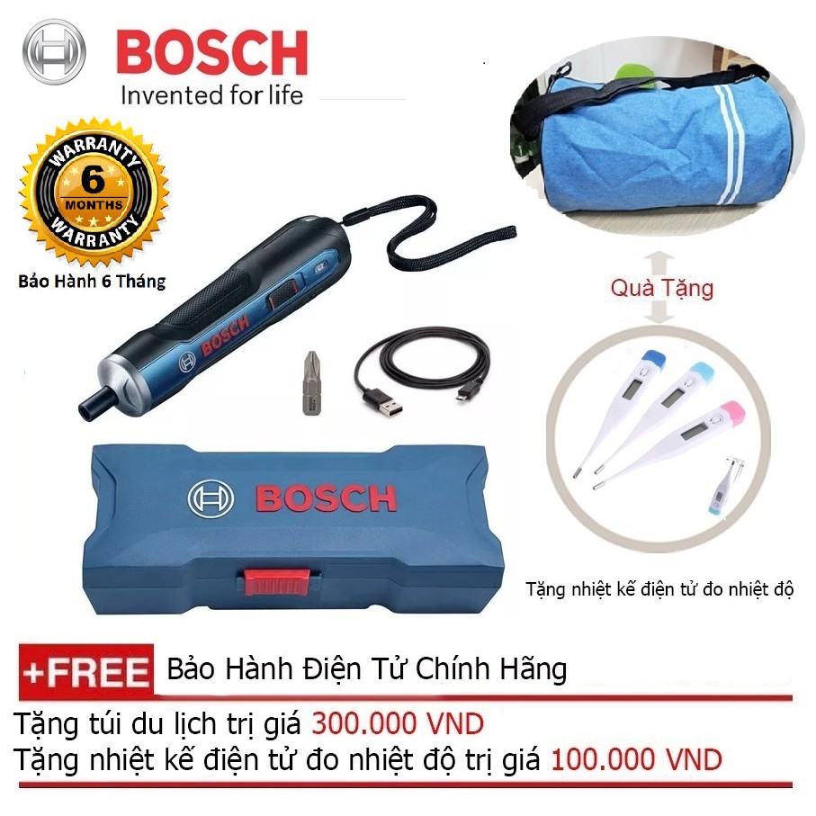 ️VUI LÒNG LIÊN HỆ VỚI SHOP ĐỂ ĐƯỢC TƯ VẤN VỀ MÁY VÀ PHƯƠNG THỨC VẬN CHUYỂN. VÌ Đ Y LÀ HÀNG CÔNG KỀNH. ƯU TIÊN CÁC BẠN Ở HÀ NỘI. Địa chỉ: 172/8/95 Chùa Bộc Đống Đa Hà Nội Số đt: 0707888555 - 0977119979 Ưu tiên liên hệ trực tiếp để vận chuyển chi phí tối ưu nhất Bosch Go 3,6 V là một công cụ hoàn hảo cho các thao tác sửa chữa thông thường với khả năng hỗ trợ bắt vặn ốc vít nhanh chóng và chính xác. Dụng cụ tiện ích thông minh này sẽ giúp người dùng hoàn thành các công việc trong thời gian ngắn mà không tốn nhiều sức lực. Không chỉ là môt thiết bị không dây nhỏ gọn cung cấp khả năng sử dụng dễ dàng, chiếc máy bắt vặn vít dùng pin Bosch Go còn có được một động cơ mạnh mẽ cho quá trình xử lý công việc linh hoạt, góp phần đem tới những hiệu quả cao. Bosch Go là một sản phẩm tiện ích mới nhất được nhà cung cấp thiết bị điện cầm tay hàng đầu thế giới cho ra mắt vào cuối năm 2017, với mục đích mang tới sự trợ giúp tối đa trong các nhu cầu bắt và vặn ốc vít trong các hoạt động lắp đặt và sửa chữa chuyên nghiệp trong các dự án và các yêu cầu làm việc cơ bản trong gia đình. Được tạo ra với một thiết kế thân thiện với người sử dụng, máy vặn vít dùng pin Bosch GO 3.6 V mang lại các giá trị thẩm mỹ trong đời sống. Các công nghệ tiên tiến vượt trội trong một kiểu dáng nhỏ gọn mang đến cho người dùng công cụ hỗ trợ hữu ích trong một loạt các ứng dụng thực tế. Xuất xứ: Malaysia Bảo hành : 6 tháng Chiều rộng 38 mm. Chiều dài 182 mm. Tốc độ không tải 0-360 vòng / phút Khoan trục chính Hình lục giác 1/4 “ Tối đa đường kính vít 5 mm. Mômen (Min / Max) 2,5 / 5 Nm Pin Li-ion 3.6V 1.5Ah Thời gian sạc 90 phút Trọng lượng (kg) 0,28 Kg. Cổng sạc Cổng USB Micro