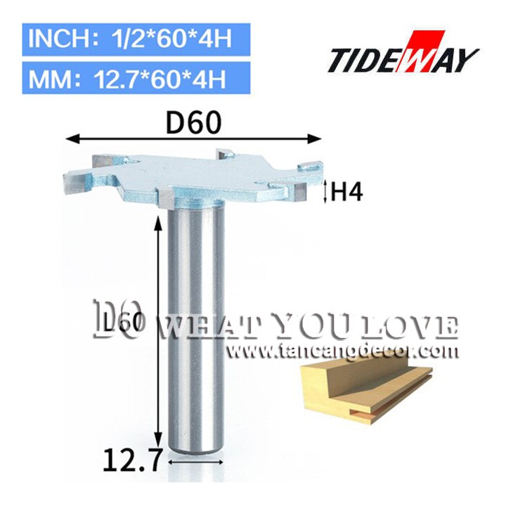 ️* Mô Tả Sản Phẩm : - Xuất Xứ : Trung Quốc - Thương Hiệu : TIDEWAY - Hàng Chính Hãng. - Chất Liệu : Thép hợp kim cứng. - Sử Dụng Cốt Máy Phay 12.7 mm. - Kích Thước : + 4 x 60 mm (T00301) + 6 x 60 mm (T00303) + 8 x 60 mm (T00304) + 4 x 60 mm (T00305) - Đơn Giá Bán 1 Mũi. * Tính Năng Sản Phẩm : - Sản phẩm chuyên dụng phay rãnh cạnh gỗ, nhựa, mica... - Chất lượng cao và tuổi thọ lâu dài hơn so các dòng mũi thông thường. - Thiết kế cắt hai lưỡi, đồng tâm cho khả năng làm việc độ chính xác cao.