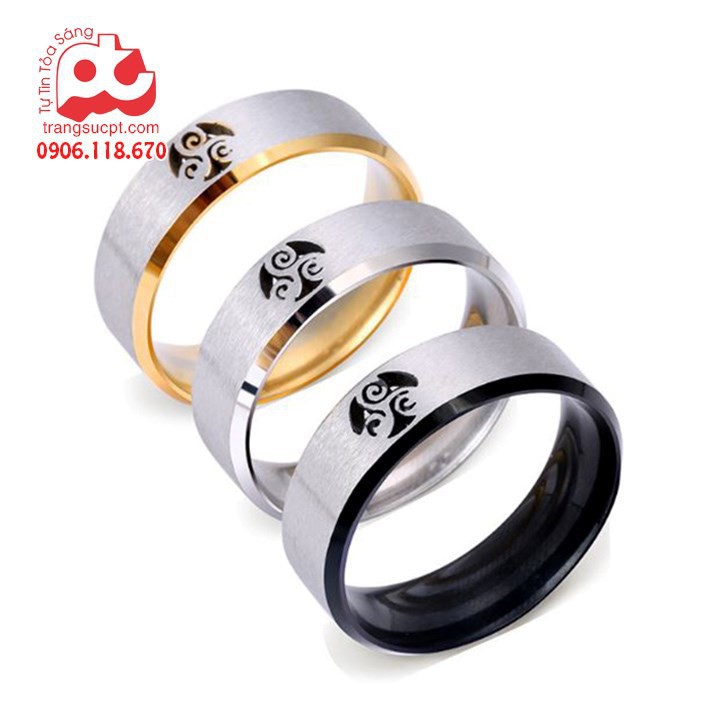 Nhẫn nam cắt laser ký hiệu openwork pattern nhiều màu cao cấp thời trang không đen