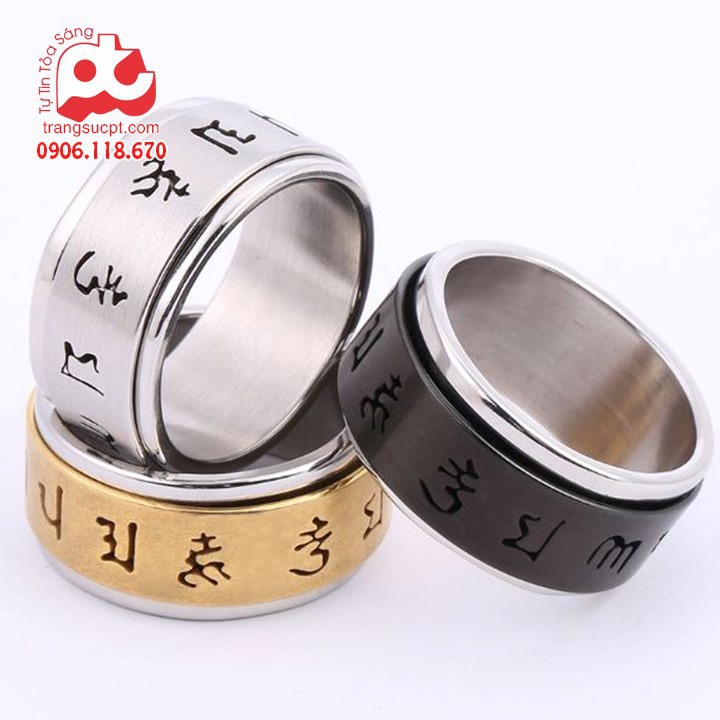 Nhẫn nam thần chú cắt laser nhiều màu cao cấp thời trang không đen