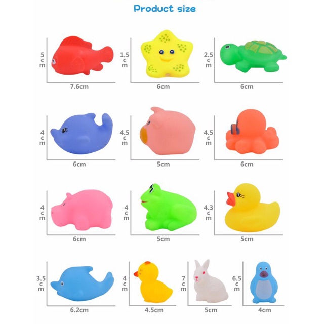 ️Bộ đồ chơi gồm 13 Con vật : Động vật, Sinh Vật dưới nước - Bé có thể chơi ở trong phòng, nhà tắm hay ngoài trời. - Giúp bé nhận biết các con vật, phân biệt màu sắc. - Màu sắc tươi sáng, đẹp. - Chất liệu cao cấp hoàn toàn an toàn cho bé. - Có gắn còi bóp chút chít vui tai. - Dành cho bé từ 06 tháng tuổi trỏ lên - Kích thước dài ~1x2x3x4x5cm. #mebe #chinhhang #dochoi #dochoitreem #dochoichobe #dochoichautam #vịt #sao #me