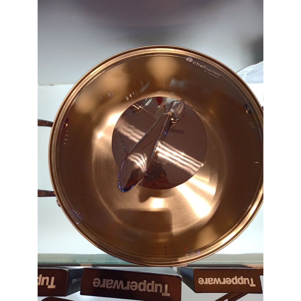 ️Nồi Chef Series Casserole nắp kính 5.7L * Cấu tạo Kích thước: 24 x 21cm Nắp: 24cm Dung tích: 5.7L Ưu điểm và tiện ích: - Thang đo định lượng được khắc bằng laser bên trong lòng nồi - Tay cầm thiết kế dạng khoen hở giúp tản nhiệt nhanh, không gây bỏng khi cầm - Thiết kế đẹp, sang trọng theo chuẩn Châu Âu - Kết cấu vật lý đáy 5 lớp và thân 3 lớp theo công nghệ độc đáo T-Technology của Tupperware: + Lớp ngoài phần thân làm từ thép không gỉ 18/10 được đánh sáng bóng để tăng độ thẩm mỹ; lớp ngoài phần đáy được tích hợp thêm từ tính để bếp nấu được trên mọi loại bếp + Lớp lõi làm từ nhôm cao cấp giúp dẫn nhiệt nhanh và tản đều khắp bề mặt + Lớp bên trong lòng nồi: làm từ thép không gỉ 18/10 được chia thang độ bên trong và không có lớp chống dính, giúp nhiệt lan tỏa đều khắp lòng nồi và thời gian giữ nhiệt lâu Công dụng: - Nấu cực nhanh, tiết kiệm thời gian và năng lượng - Sử dụng ít dầu mỡ - Giữ được tối đa dinh dưỡng và hương vị - Chất liệu thép không gỉ 18/10, an toàn cho sức khỏe, bền bỉ với thời gian *** Sử dụng cho mọi loại bếp