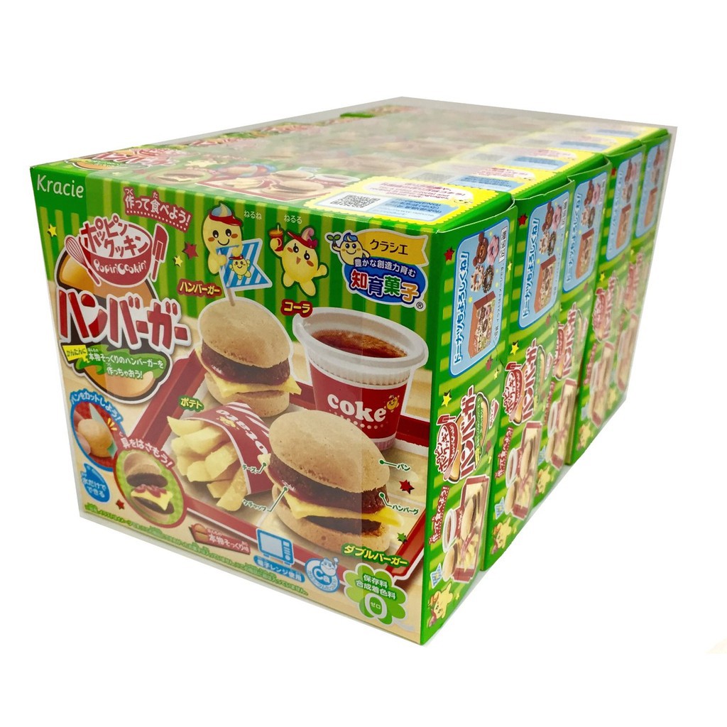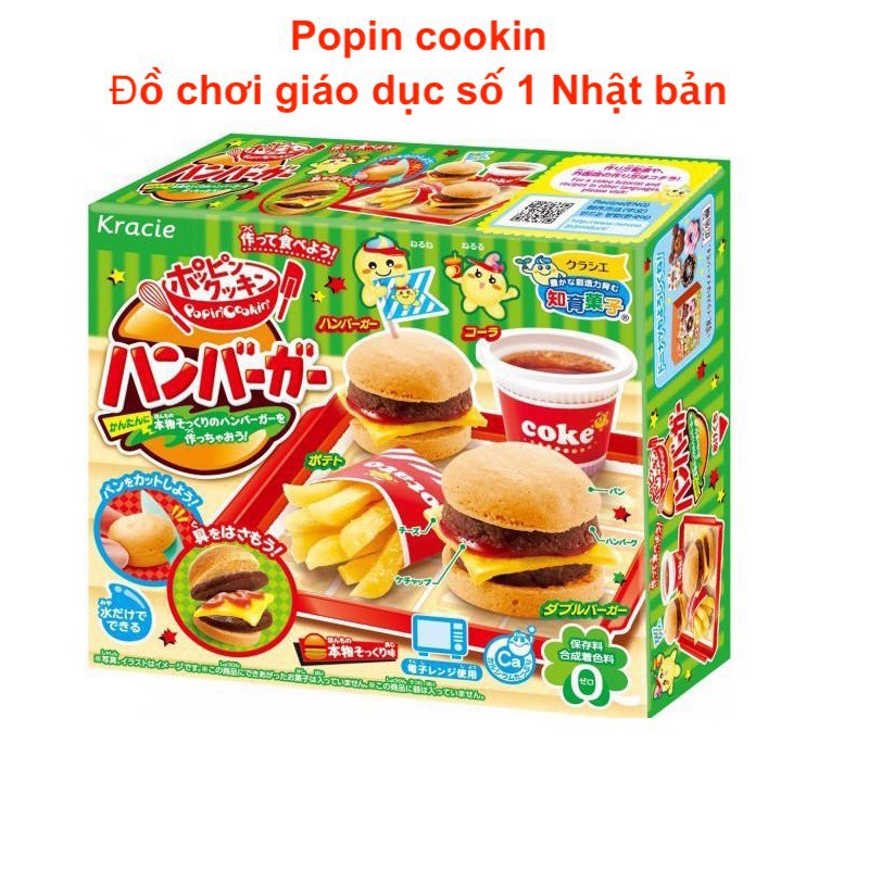 ️Popin Cookin bộ làm bánh Hamburger - Đồ chơi nấu ăn Nhật Bản ▶️ Xuất xứ: Nhật Bản ▶️ Hạn sử dụng: 6.2020 ✔️ Kracie Popin Cookin là sản phẩm đồ chơi sáng tạo xuất xứ từ Nhật Bản được rất nhiều trẻ em trên khắp thế giới yêu thích. ✔️Đây là loại đồ chơi tự làm đồ ăn với nguyên liệu là 1 loại kẹo dẻo. Do làm bằng kẹo dẻo nên sau khi đã trổ tài đầu bếp, bé yêu của bạn có thể thưởng thức chính những món ăn mình vừa tự làm ra. ✔️Sản phẩm phù hợp cho các bé từ 3 tuổi trở lên và được xếp vào loại đồ chơi giáo dục tại Nhật. Với việc để bé thoả sức sáng tạo nhào, nặn và tự tạo màu sắc, sản phẩm sẽ giúp phát triển tư duy của bé một cách hiệu quả mà lại không gây nhàm chán. ✔️Khách có thể xem clip hướng dẫn cách chơi các bộ Popin Cookin này bằng cách vào Youtube gõ tên của loại Popin Cookin là sẽ ra nhiều clip hướng dẫn chơi rất dễ hiểu ạh ^^ Cách chơi: Bước 1: Bé dùng kéo cắt rời từng khuân làm bánh ra khỏi khay nhựa. Bước 2: Hãy bắt đầu với việc chế biến món khoai tây chiên ăn kèm bằng cách lấy gói bột màu cam và đổ ra khuân có đáy được thiết kế có các rãnh giúp bé chia nhỏ các miếng khoai tây dễ dàng, cho nước nhào hỗn hợp bột lên và nén chặt xuống dưới khay, sao cho tạo thành 1 khối phẳng mềm mịn. Sau đó bé nhớ cho khuân khoai tây vào lò nướng khoảng 30s, sau đó lấy ra và dùng dao cắt thành các miếng dài đều như khoai tây chiên bé vẫn ăn hàng ngày. Bước 3: Bé sẽ làm bánh mì bằng gói màu đỏ và nhân bánh mì bằng gói màu nâu. Nhào bột màu nâu vào khuân nhào bột rồi cho vào khuân tròn, tiếp đến bé quấy đều gói bột màu đỏ cho vào 2 khuân tròn còn lại. Nướng trong lò 30s bé sẽ được một chiếc bánh mì và nhân thịt kẹp thơm ngon. Bước 4: Bé tiếp tục lấy gói bột màu xanh, cho nước nhào lên để. Bước 5: Bé cắt lát bánh mì, kẹp thịt, nước sốt và pho mai vào giữa bé sẽ có 2 chiếc bánh hamburger mini trông cực kì bắt mắt. Bước 6: bé đổ gói bột còn lại vào cốc nước đi kèm trong gói để có một ly coca giải khát nhé. Cuối cùng là chuẩn bị thưởng thức bữa ăn do chính #popincookin #hamburger **Do nhà sản xuất thường xuyên thay đổi bao bì bên ngoài nên bao bì sản phẩm thực tế và ảnh có thể có sự khác biệt, tuy nhiên bên trong sản phẩm không thay đổi.!!