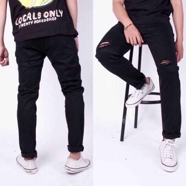 QUẦN JEAN NAM ĐEN RÁCH GỐI CÁ TÍNH