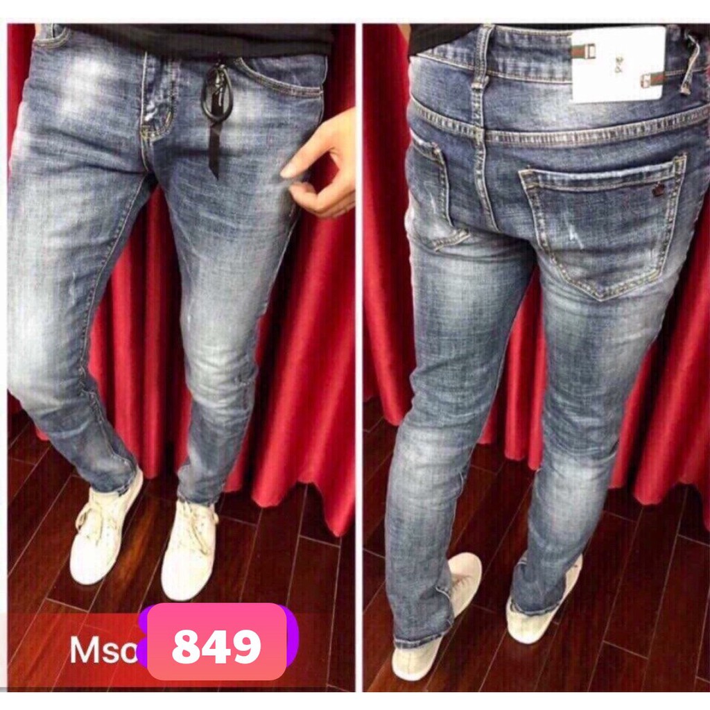 Quần Jean Nam jeans nam rách gối jeans nam body quần jeans nam xước Wash fashionteengroup MS 849