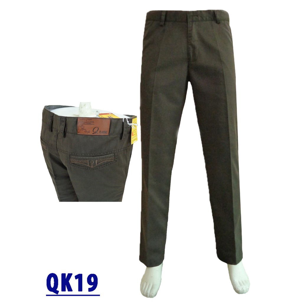 Quần kaki trung niên ống rộng vải in màu nâu QK019