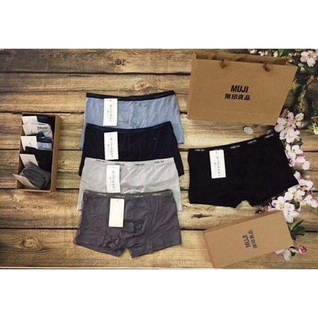 - Quần lót nam MUJI : chất liệu 100% vải bông mềm (100% cotton hữu cơ) co giãn 4 chiều , màu sắc trung tính dễ dùng.