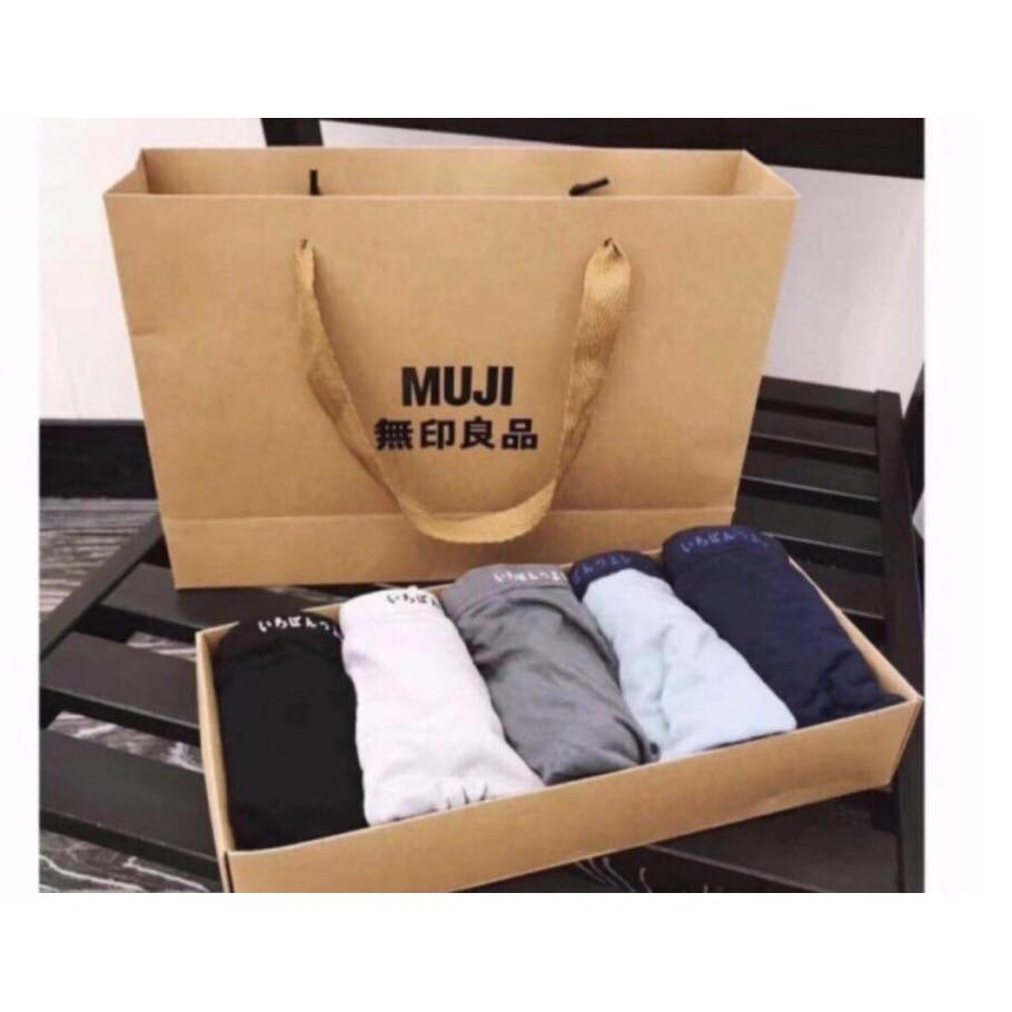 ️QUẦN SỊP MUJI NAM ?? ?Giá: #150k/ hộp / 5 CÁI ❌❌ Quần sịp nam MUJI mặc thích nhất quả đất đã về đây rồi, ngó qua chất liệu để biết tại sao quần lại được nhiều các anh thích như thế nha các nàng: Chất liệu 100% vải bông mềm (100% cotton hữu cơ) co giãn 4 chiều, màu sắc trung tính dễ dùng. ‼️‼️ Cái này mấy chị sành hay đi mua cho các anh chồng là biết rõ nhất. ?Set 5 quần lót nam Muji với chất liệu mềm mại, bền đẹp, thoáng mát, đàn hồi, giúp co giãn cực tốt, mang lại cảm giác thoải mái, không gây ảnh hưởng đến sức khỏe. ?Đặc biệt có những lỗ thông hơi , tạo cảm giác thoải mái ??Quần có độ thấm hút mồ hôi cao, tạo sự thoáng mát ??Kiểu dáng ôm sát body, thời trang, trẻ trung, thích hợp khi vận động, chơi thể thao cho các bạn trẻ năng động.???? ✅ Size L: 45kg đến 60kg ✅ Size XL: 60kg đến 70kg ✅ Size XXL: 70kg đến 80kg