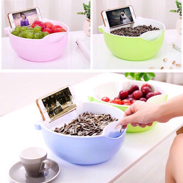 RỔ ĐỰNG ĐIỆN THOẠI HỘT DƯA HOA QUẢ ĐA CHỨC NĂNG Màu sắc ngẫu nhiên ko chọn màu Vừa xem phim vừa ăn hoa quả tiện dụng gì bằng