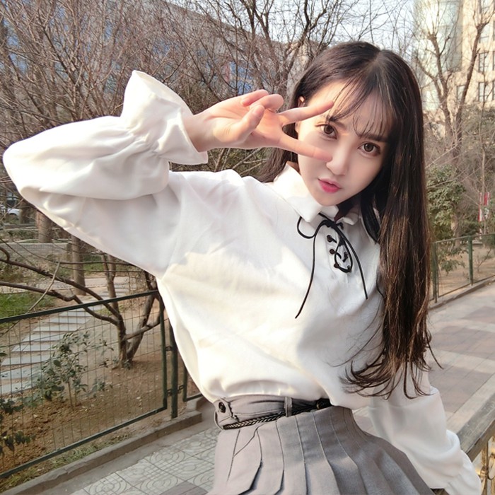 (Sẵn) sơ mi ulzzang áo sơ mi nữ trắng áo kiểu dáng Hàn Quốc tay bồng thắt nơ bánh bèo - Dài tay
