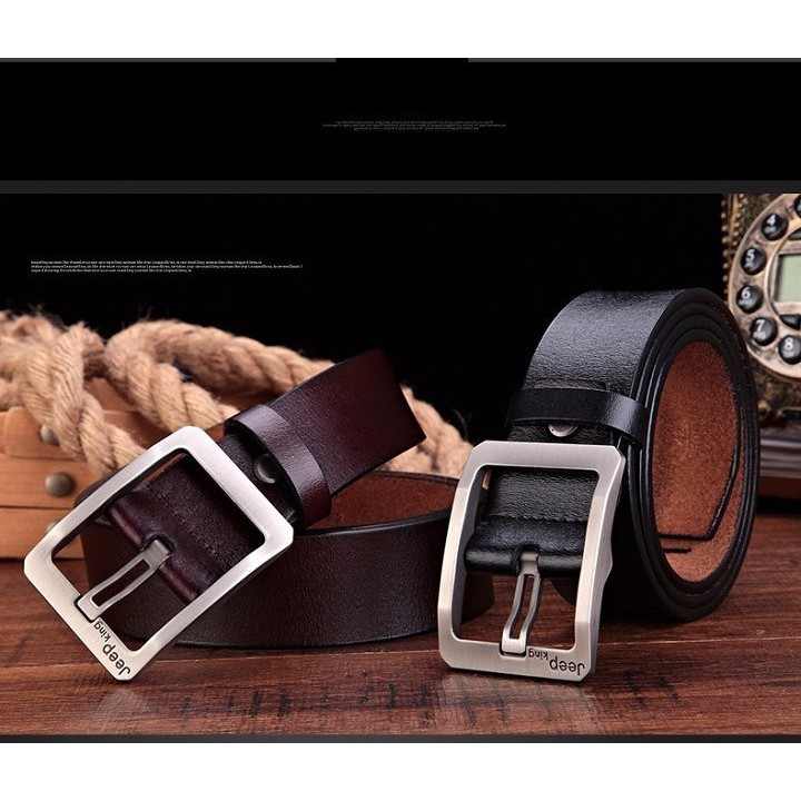 ️Bộ sản phẩm bao gồm : 1 dây lưng da bò màu đen + 1 dây lưng da bò màu nâu. Thắt lưng nam da thật, thắt lưng nam da bò 100% - Thương hiệu Jeep King là phụ kiện sang trọng, đẳng cấp mà Shop dành tặng cho các bạn nam yêu thích sự lịch lãm, sang trọng. Sản phẩm còn là một món quà vô cùng ý nghĩa để bạn trao tặng cho người thân, hoặc bạn bè của mình trong các dịp lễ đặc biệt. Thông tin sản phẩm: Màu sắc: màu nâu - Thắt lưng nam da thật, thắt lưng nam da bò 100% - Thương hiệu Jeep King - Cam kết sản phẩm 100% từ da bò. - Thiết kế độc đáo và đầy sáng tạo lầm nổi bật phong cách người sử dụng. - Sản phẩm sang trong , hợp thời trang. - Đường vân tự nhiên, độ bóng cao , mềm mịn, dẻo dai, uốn cong không nứt, không gãy gập, chống nước , dùng lâu vẫn như mới. - Mặt khóa được đúc từ hợp kim chất lượng ưu việt không bị gỉ hoặc phai màu làm cho sản phẩm luôn sáng bóng. - Thiết kế khóa đinh đơn giản, tiện dụng nhưng tinh tế , mang lại nét sang trọng lịch lãm cho người sử dụng. - Kích thước: 115cm x 3.8cm (dài x rộng)
