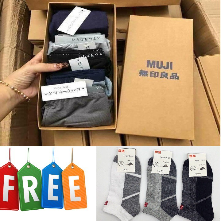 ️Quần lót nam MUJI Vui lòng liên hệ trước khi mua hàng : 098 597 1101 Quần lót nam MUJI mặc thích nhất quả đất đây rồi, (loại xin là chữ tiếng nhật chạy quanh cạp quần như em up ạ) ngó qua chất liệu để biết tại sao quần lại được nhiều các anh thích như thế nha các nàng : chất liệu 100% vải cotton bông mềm (100% cotton hữu cơ) co giãn 4 chiều , màu sắc trung tính dễ dùng, Sản phẩm hot nhất năm nhé, cái này mấy chị sành hay đi mua đồ cho các anh chồng là biết rõ nhất nhé - Giá iu iu : Combo 4 chiếc được khuyến mại +1 chiếc nữa mà giá không đổi c + Hàng chuẩn chất liệu cotton 100%, , kèm hộp túi xách rất đẹp, đúng điệu hàng hiệu luôn nhé. E cam kết luôn với khách iu, đã mua dùng là thích là sướng. Rất nhiều khách của mình đã mua và tiếp tục mua tiếp ủng hộ shop, giới thiệu bạn bè người thân sử dụng. 1 hộp 5 màu như hình. Bảng chọn size nhé, hoặc alo bên mình tư vấn nhé. * size : L : 50 đến 60kg * size :XL: 60 đến 70kg * size XXL: 70kg đến 85kg