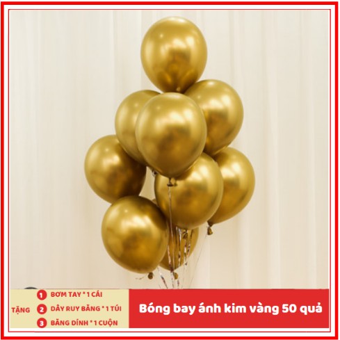 ️Set bóng nhũ vàng BB05 gồm có: Bóng bay ánh kim vàng 50 quả Tặng kèm: 1 bơm hơi + 1 ruy băng + 1 keo dán