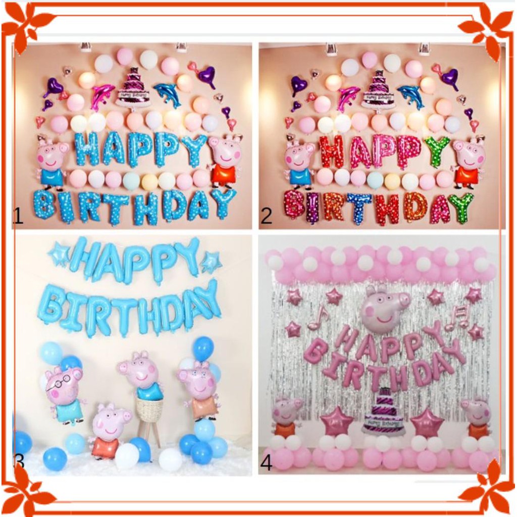 Set bóng trang trí sinh nhật bé tuổi heo(Có bóng số và tên bé)