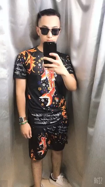 Set quần áo thể thao hè nam 3D cá chép đỏ may mắn( FREESHIP) - Bộ hè