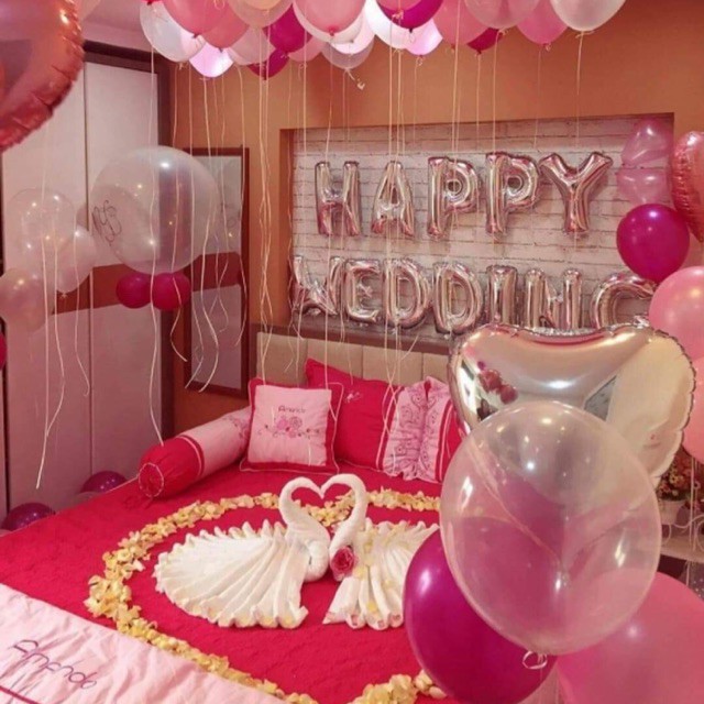 ️?Trang trí phóng cưới thật đơn giản với bóng. Nếu bạn chưa có ý tưởng trang trí phòng cưới thế nào hãy ib cho chúng tôi để được tư vấn nhé. ?Set bóng bao gồm: 1. Bộ chữ HAPPY WEDDING (Được chọn màu vàng đồng, bạc, đỏ, hồng bi) 2. 50 bóng nhũ ( Được chọn màu) 3. Hai tim đại hoặc sao đại ( được chọn màu theo ý ) 4. Bơm tay, băng keo chuyên dụng và ruy băng buộc bóng NOTE: Ghi chú màu khi đặt hàng or chát với shop để chọn màu theo ý muốn ạ ##Hastas ☎️0936302186