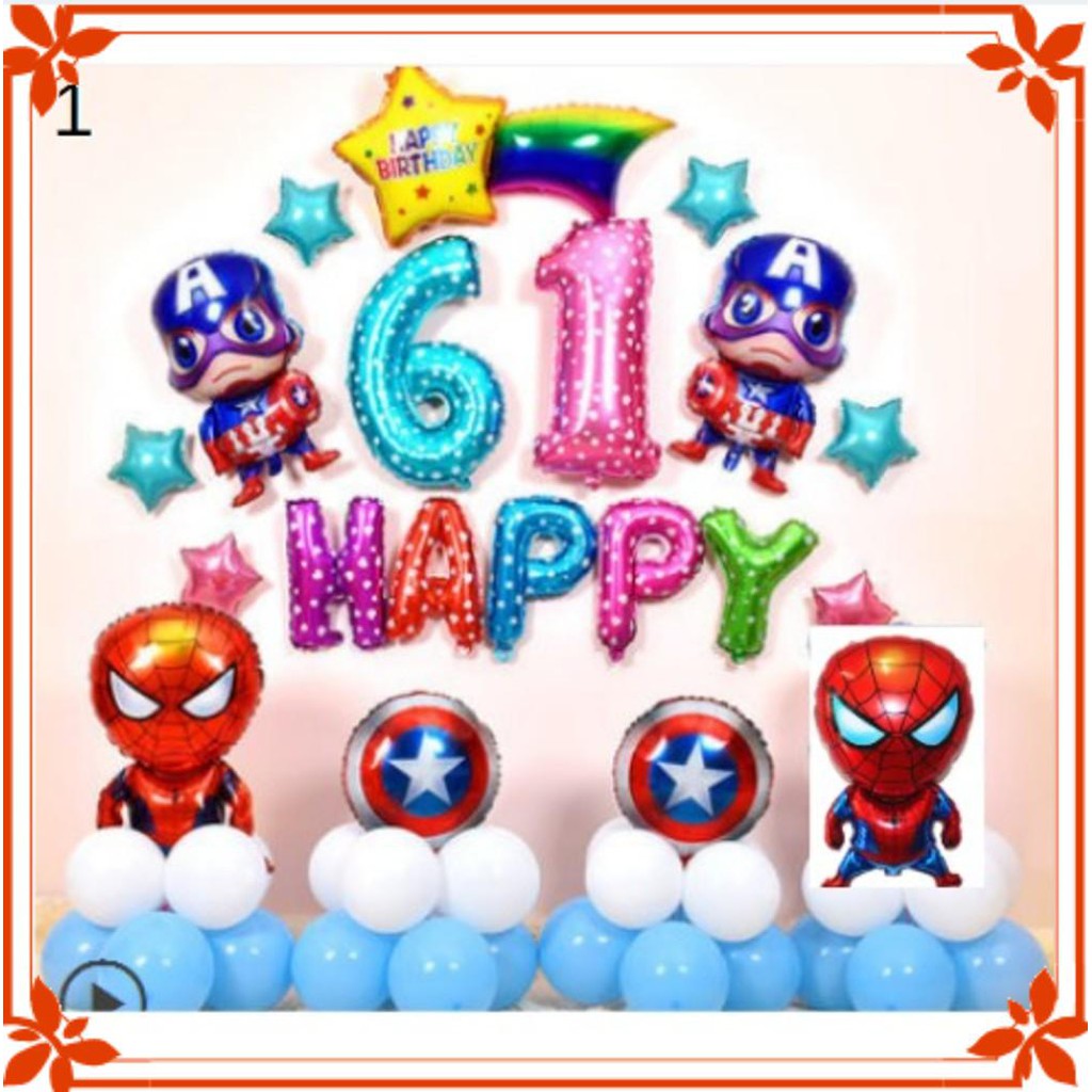 Set trang tri sinh nhật chủ đề siêu nhân -người nhện-đội trưởng mỹ cho bé trai