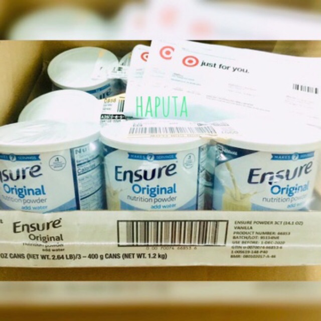 ️Sữa Ensure mình order từ Mỹ, ship về Việt Nam bằng đường hàng không, luôn luôn bảo đảm chất lượng sữa tốt nhất đến tay khách hàng. Cảm ơn bạn đã ủng hộ Haputa. ---- Sữa Ensure Original Là dòng sản phẩm dinh dưỡng cao, bổ sung canxi, đạm và các nhóm vitamin cần thiết, cực kỳ phù hợp cho người mới ốm dậy hoặc người cần bổ sung dinh dưỡng, người lớn tuổi. Ngừa loãng xương, bổ sung Sắt và Canxi, đặc biệt sữa không chứa Gluten. [Cách pha sữa Ensure ] + Pha 200ml nước ấm ( 40 độ) với 2 muỗng canh đầy sữa ( khoảng 57gram), khuấy đều lên và thưởng thức ạ ??. Khách sẽ được ngay 1 ly 237ml Ensure thơm ngon, uống vào bổ khoẻ ??. #Ensure #SữaEnsure #SữaEnsureMy #EnsureMy #Haputa #sữa