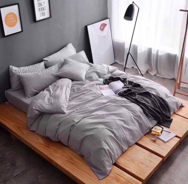 Siêu đẹp - Bộ chăn ga gối đũi trơn một màu