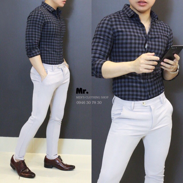 Sơmi lụa caro nam hàn quốc - Dài tay