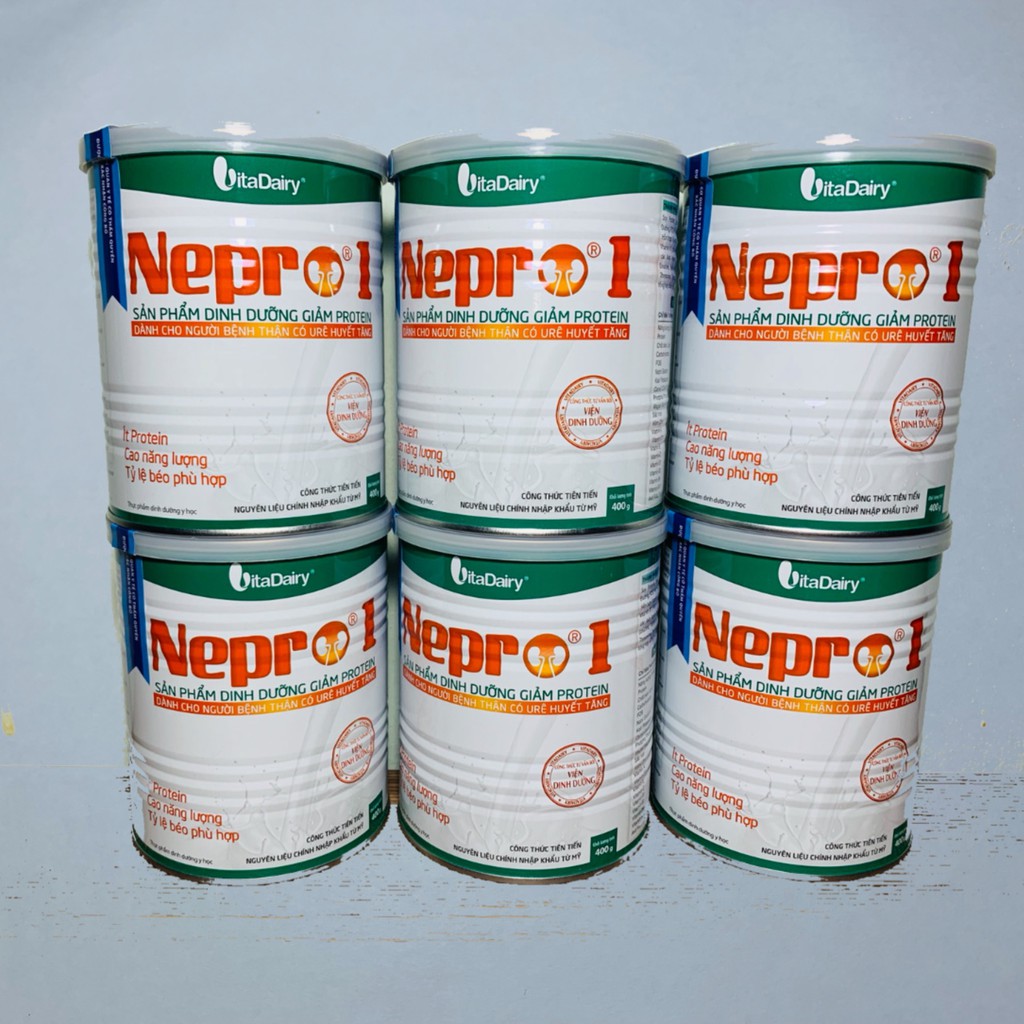 ️iểm soát giảm đạm. Giàu dinh dưỡng. Ít Natri, Kali, Phospho. Tốt cho tiêu hóa Thơm ngon, tiện lợi Công thức được tư vấn bởi: Viện dinh dưỡng Quốc gia. Nguyên liệu chính nhập khẩu từ Mỹ. Nhà máy sản xuất đạt tiêu chuẩn HACCP, ISO 9001, ISO 22000 VitaDairy Nepro 1: Dinh dưỡng kiểm soát giảm đạm Nepro 1 là sản phẩm dinh dưỡng giảm đạm, 1 ly 100ml chỉ chứa 2.3 gam đạm, phù hợp với nhu cầu ăn giảm đạm ở bệnh nhân suy thận giúp: Giảm gánh nặng lên tình trạng suy thận mạn. Giảm biến chứng của suy thận. Dễ dàng tính toán lượng đạm khi xây dựng thực đơn theo nhu cầu và tình trạng của người bệnh suy thận. Giàu dinh dưỡng: Nepro 1 có công thức dinh dưỡng đặc chế giàu năng lượng, giúp cung cấp dinh dưỡng tốt cho cơ thể. 1 ly Nepro 1 pha chuẩn 100ml cung cấp 100kcal, phù hợp với nhu cầu đảm bảo năng lượng tăng ở bệnh nhân thận. Ít Natri, Kali, Phospho:giúp kiểm soát và tính toán mức an toàn, giảm gánh nặng lên thận, tim, giảm các biến chứng phù, huyết áp, rối loạn điện giải ở bệnh nhân thận. Hỗ trợ hấp thu và tiêu hóa: Nepro 1 có thành phần dinh dưỡng dễ hấp thu: nguồn đạm sữa kết hợp đạm đậu nành, chất béo nguồn gốc thực vật, được bổ sung chất xơ tự nhiên FOS – thành phần có tác dụng phòng ngừa táo bón, nuôi dưỡng các vi khuẩn có lợi, ức chế các vi khuẩn có hại tại đường tiêu hóa – nên dễ tiêu hóa, dễ hấp thu. Không gây tiêu chảy ở người thiếu men Lactase:Nepro 1 không chứa đường Lactose, do đó hạn chế được tình trạng tiêu chảy ở người bất dung nạp lactose. Không chứa Cholesterol: Bảo vệ tim mạch, góp phầngiảm biến chứng tim mạch, huyết áp ở bệnh nhân thận. Bổ sung đầy đủ các vitamin và khoáng chất cần thiết cho nhu cầu hàng ngày, giúp bảo vệ và tăng cường sức khỏe.