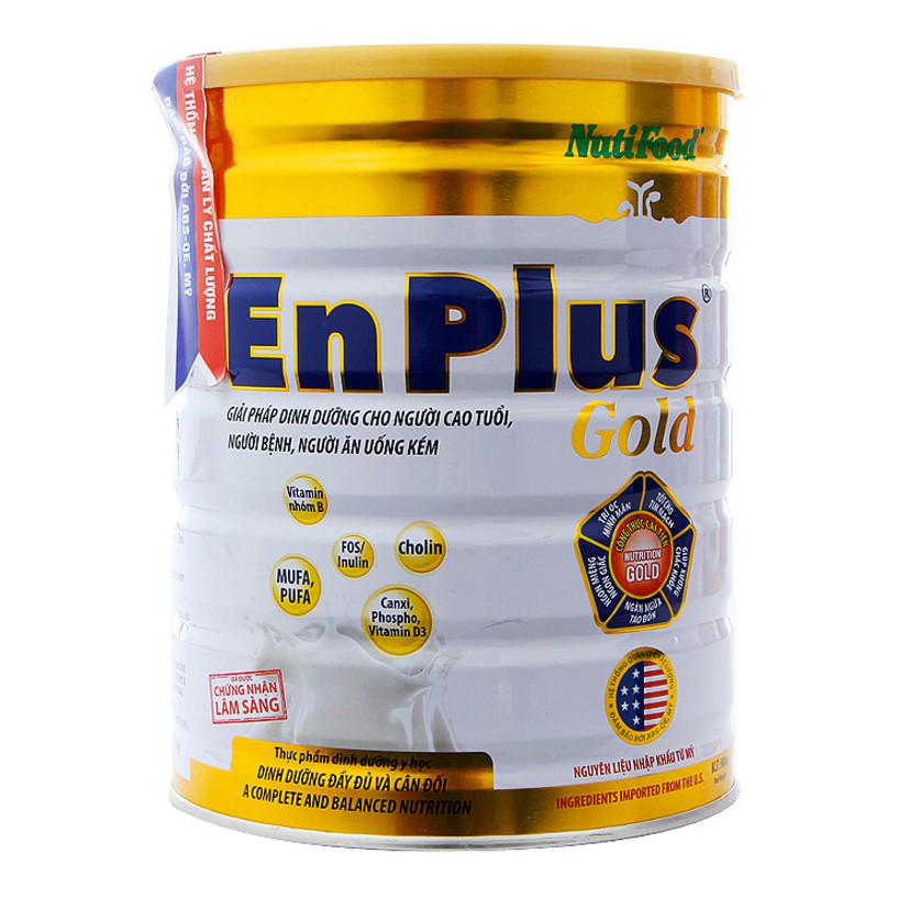 ️Độ tuổi: Người lớn tuổi Phù hợp: Người ăn uống kém, phục hồi sức khỏe Năng lượng: 230kcal/ 230ml Sản xuất: Việt NamNuti Enplus Gold là giải pháp dinh dưỡng tối ưu giúp người cao tuổi khỏe mạnh, trí tuệ minh mẫn, giúp người bệnh phục hồi nhanh, giúp người ăn uống kém ăn ngon miệng hơn để có một sức khỏe hoàn hảo tận hưởng niềm vui cuộc sống. Sản phầm EnPlus Gold đã được kiểm nghiệm lâm sàng bỡi Viện Dinh dưỡng Quốc gia với công thức NUTRITION GOLD gồm các tính năng nổi bậc: – Tốt cho tim mạch: MUFA, PUFA giúp giảm cholesterol trong máu, giảm huyết áp, chống viêm nhiễm, giảm các nguy cơ bệnh lý về tim mạch. – Trí óc minh mẫn: Cholin hỗ trợ hoạt động não bộ giúp hạn chế và cải thiện các chứng bệnh giảm trí nhớ ở người cao tuổi. – Giúp xương chắc khỏe: Canxi, phospho, vitamin D3 tối ưu hóa quá trình khoáng hóa cho xương, giúp hệ xương vững chắc, phòng ngừa loãng xương. – Ngăn ngừa táo bón: FOS/Inulin hỗ trợ hệ đường ruột khỏe mạnh, hấp thu hiệu quả các dưỡng chất, ngừa táo bón. – Ngon miệng, ngon giấc: Vitamin nhóm B, acid folic, sắt, kẽm, Magie, Selen tăng cảm giác ngon miệng, tăng sức đề kháng và có giấc ngủ ngon. Sản phẩm đã được kiểm nghiệm lâm sàng bỡi Viện Dinh dưỡng Quốc gia cho thấy có sự cải thiện tình trạng dinh dưỡng rõ rệt, cải thiện tình trạng thiếu máu, thiếu Vitamin A, thiếu kẽm, giảm táo bón và rối loạn tiêu hóa ở người trung niên và cao tuổi. Hướng dẫn sử dụng sữa EnPlus Gold Khuấy đều 54g bột EnPlus Gold (tương đương 6 muỗng gạt) với 200ml nước chín ấm (khoảng 500C) được 230ml EnPlus Gold cung cấp 230Kcal (1ml EnPlus Gold pha theo hướng dẫn cung cấp 1Kcal). Dùng 1-3 ly mỗi ngày hoặc theo hướng dẫn của bác sĩ. Sử dụng ngay sau khi pha. EnPlus Gold là sản phẩm đặc biệt có thể sử dụng nuôi ăn qua ống thông theo hướng dẫn của bác sĩ hoặc chuyên viên dinh dưỡng. Hướng dẫn bảo quản: Bảo quản nơi khô ráo, sạch sẽ, thoáng mát, tránh ánh nắng trực tiếp. Lon đã mở phải được dậy kỹ bằng nắp nhựa và được sử dụng hết trong vòng 3 tuần. Thận trọng: Đổ bỏ phần thừa sau mỗi lần uống. Nếu EnPlus Gold pha xong chưa được dùng ngay, phải đậy kín, bảo quản trong tủ lạnh từ 4-60 C và dùng trong vòng 24 giờ.