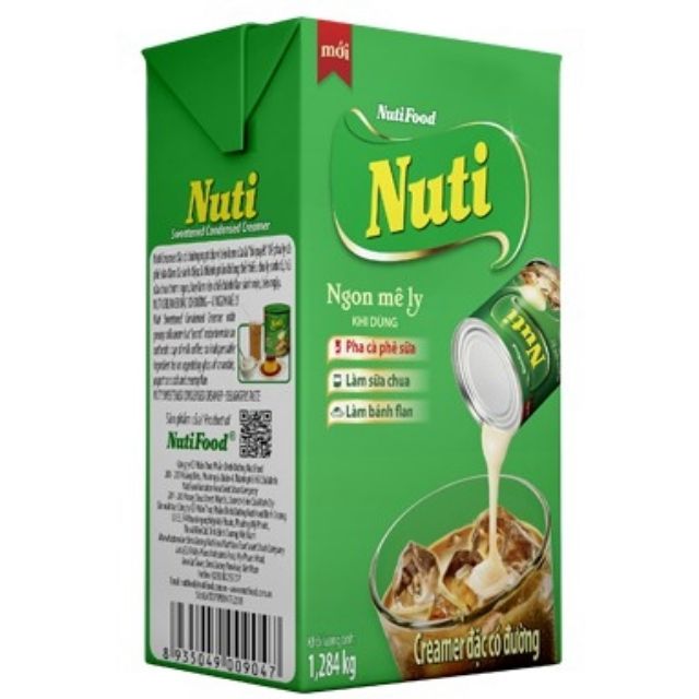 ️Kem đặc có đường Nuti xanh lá lon 1284gđậm đà ,đặc sánh, mang lại hương vị hài hòa, thơm béo. Khối lương 1284g Thương hiệu nutifood Xuất xứ Việt Nam Hướng dẫn sử dụng: Có thể sử dụng trực tiếp hoặc dùng để pha chế các món ăn, đồ uống.