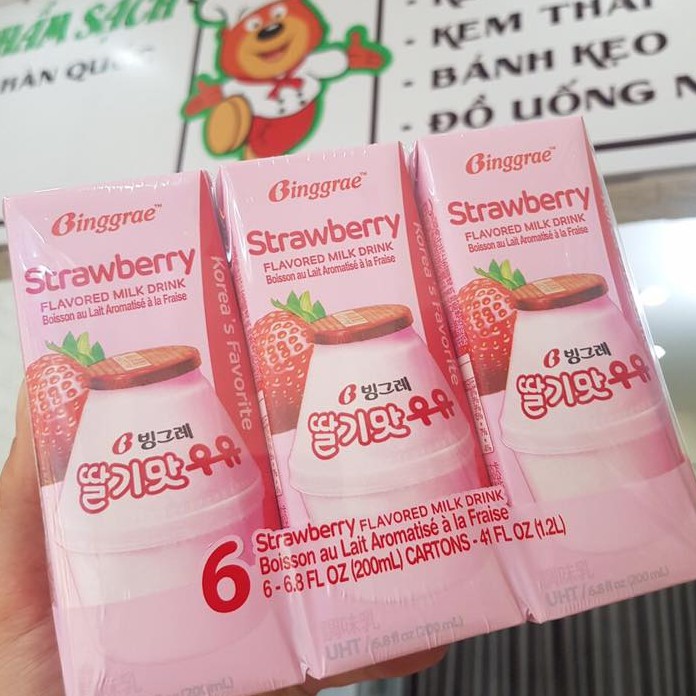 ️SỮA TIỆT TRÙNG BINGGRAE HÀN QUỐC Sữa Tiệt Trùng Binggrae Hàn Quốc Lốc 6 Hộp x 200ml Hướng dẫn bảo quản: Bảo quản ở điều kiện vệ sinh sạch sẽ, thoáng mát, tránh ánh nắng mặt trời Xuất xứ: Hàn Quốc Quy cách đóng gói: 6 hộp/lốc Hương vị: Hương chuối, dưa lưới, dâu tây Dung tích: 200ml Thành phần: Sữa, nước, đường, bột sữa gầy, bột whey, nước ép chuối cô đặc, hương nhân tạo dùng trong thực phẩm... Hạn sử dụng: 6 tháng Hướng dẫn sử dụng: Dùng uống trực tiếp, ngon hơn khi uống lạnh Loại sữa: Có đường Sữa tươi Binggrae là một trong những đồ uống bán chạy nhất tại Hàn Quốc, có thể chinh phục được bất kỳ ai chỉ với một lần thử bởi nó mang đến cho người dùng vị ngọt dịu, cảm giác nhẹ nhàng. Sản phẩm được xử lý bằng công nghệ tiệt trùng UHT hiện đại, đồng thời giữ lại tối đa các chất dinh dưỡng và hương vị tự nhiên ngon nên đối với trẻ em hay người lớn đều rất dễ uống – Sữa Binggrae được đông đảo người tiêu dùng ở Hàn Quốc yêu thích vì có chứa hàm lượng sữa tươi lên đến 80%. Do đó tạo ra vị ngọt bùi và đậm đà hơn các sản phẩm khác. Cộng với hương vị chuối, vị dâu, dưa gang, sản phẩm tạo ra sự khác biệt so với các sản phẩm sữa tươi thông thường. Kích thích thị giác và vị giác của khách hàng. – Thành phần chính gồm: sữa, nước, đường, bột sữa gầy, (nước chuối, hương chuối) với vị Chuối, (nước dâu, hương dâu) với vị dâu, (nước dưa lưới, hương dưa lưới) với vị dưa lưới, … Sữa có hương vị tự nhiên thơm ngon nên trẻ em hay người lớn đều rất dễ uống. – Các thành phần trong sữa bổ sung chất Xơ, Vitamin nhóm B, Sắt, Magie, Canxi, Kali… giúp nhuận tràng, tốt cho dạ dày, ổn định huyết áp, giúp xương chắc khỏe, giảm stress hiệu quả. – Sữa Binggrae đã được đóng hộp giấy nhỏ gọn với ống hút tiện lợi. Nên các Mẹ có thể dễ dàng đem theo bên mình mọi lúc mọi nơi để thưởng thức hương vị sữa thơm ngon hảo hạng. #suatiettrrung #binggraehanquoc #suahanquoc #binggrae #suahanquoc #vichuoi #vidualuoi #vidautay #vidau #suanhapkhau #sua #suachobe