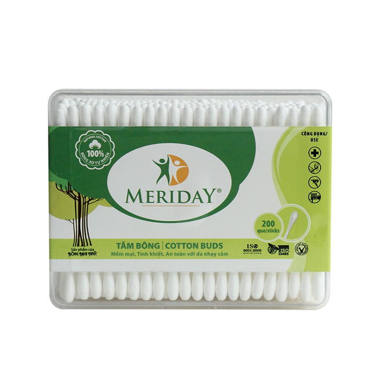 ️Tăm bông Meriday được làm từ 100% bông xơ tự nhiên, không pha sợi polyester, an toàn sạch sẽ không gây kích ứng khi sử dụng cho trẻ em. + Sử dụng công nghệ định hình đầu bông tiên tiến giúp tăng độ kết dính giúp bông không rơi vào tai. Que nhựa đàn hồi chịu được nhiệt độ cao. + Thiết kế đa dạng đầu bông tròn làm tăng khả năng tiếp xúc giúp dễ dàng vệ sinh sạch tai.