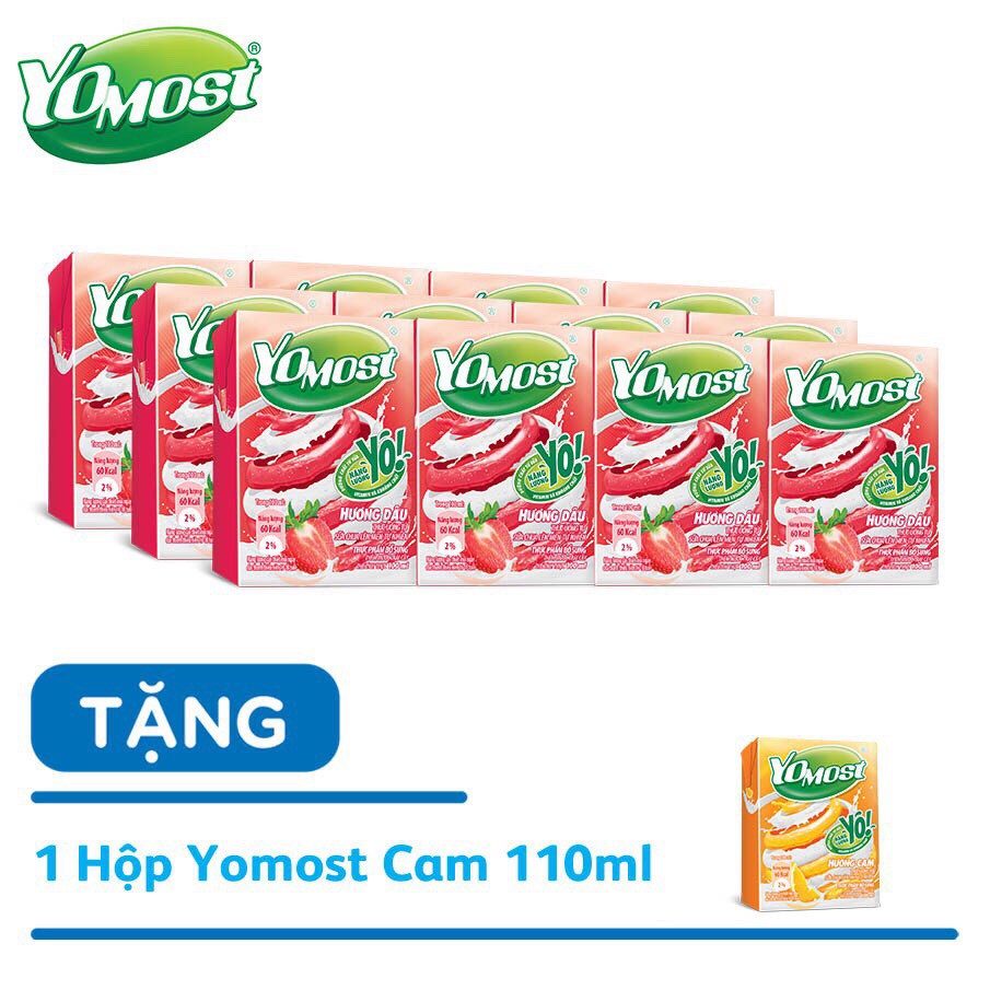 [Tặng 1 hộp Yomost vị cam khi mua 3 lốc]Sữa Yomost hương dâu 110ml